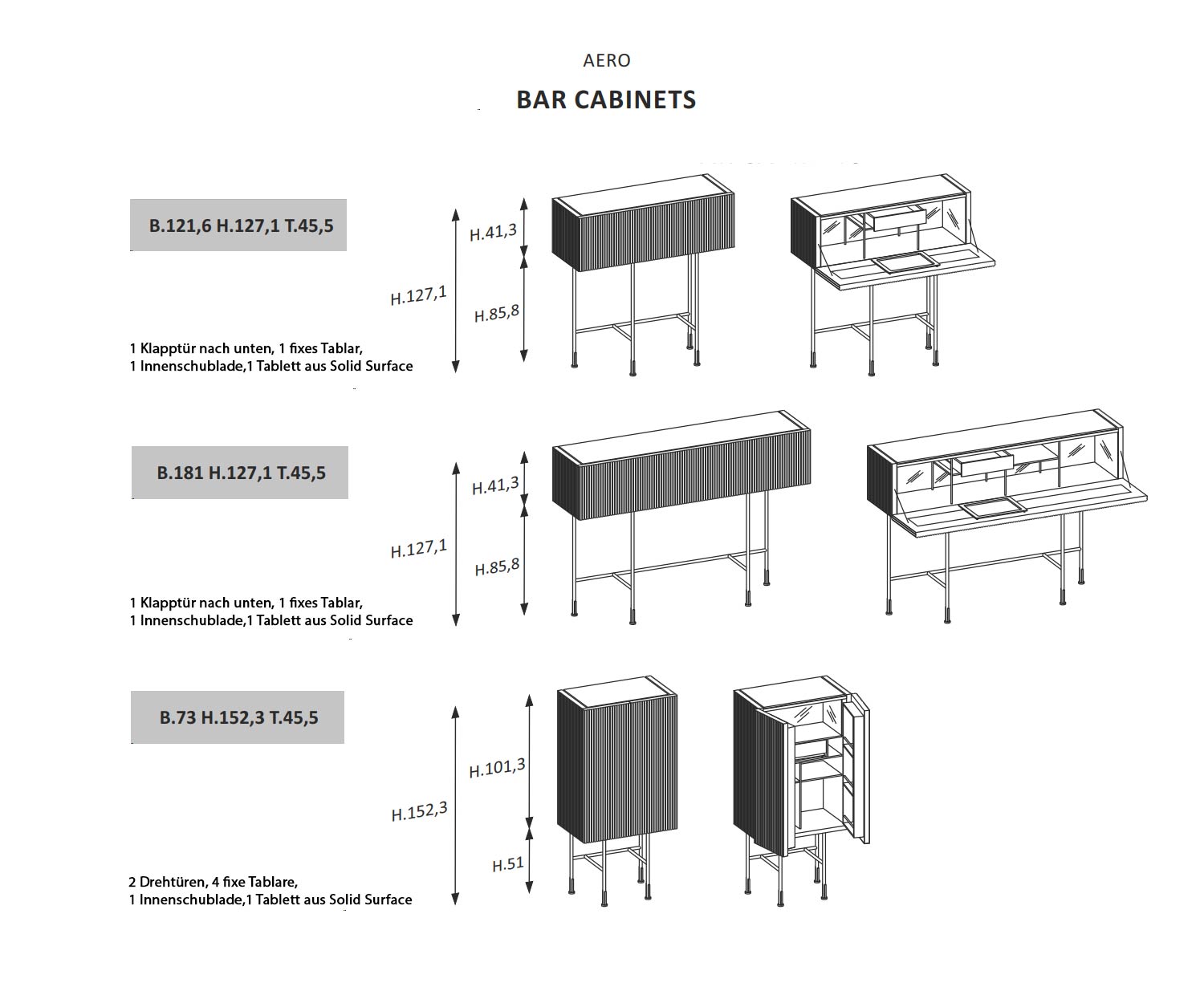 Das Aero Bar Sideboard ist erhältlich mit den Maßen: