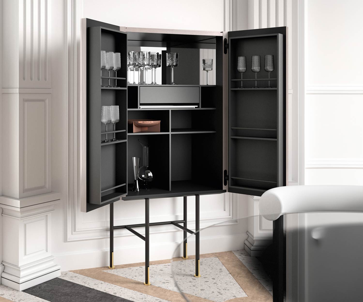 Die Bar Cabinets sind mit einem abnehmbaren Tablett aus weißem Solid Surface ausgestattet. Die genauen Details zu den Maßen, der Innenausstattung und den technischen Hinweisen können Sie in unserer Galerie auffinden.