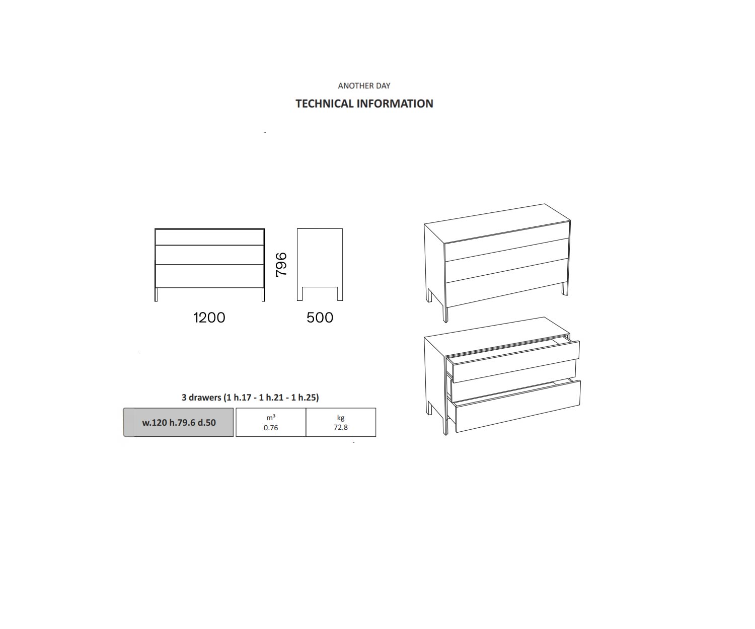 B 120 cm / H 79 cm / T 50 cm