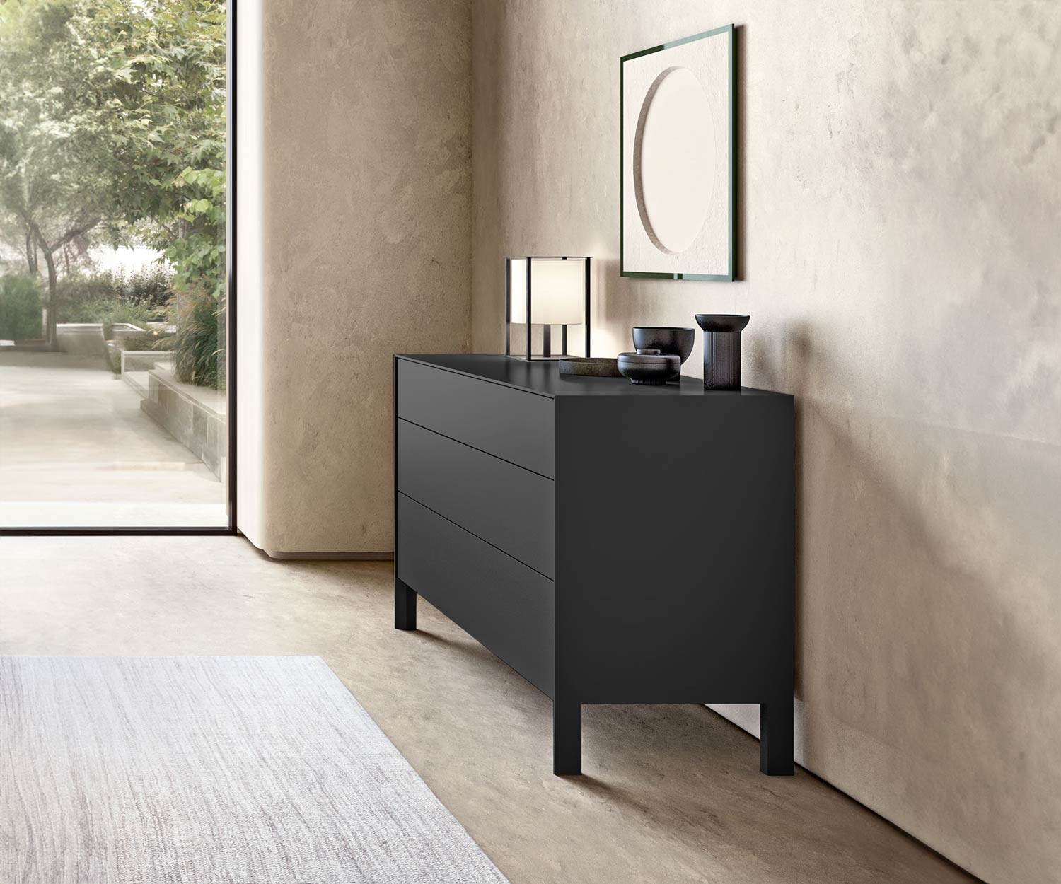 Die Innenseiten der Capo d´Opera Another Day Kommode besteht aus Melamin. Die Außenseiten und Fronten bestehen aus einer hochwertigen MDF-Platte und sind matt lackiert.