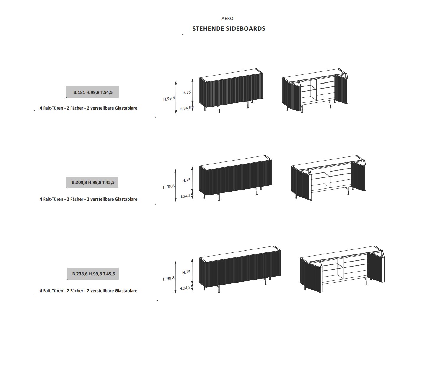 L'Aero Sideboard est disponible dans les dimensions suivantes :
