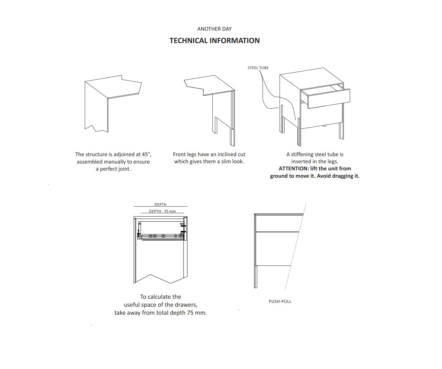 Une caractéristique particulière de cette commode est la structure angulaire à 45 degrés, qui n'est pas seulement esthétique, mais qui assure également une stabilité accrue. Cette finition précise garantit un assemblage parfait, à la fois durable et agréable au toucher.