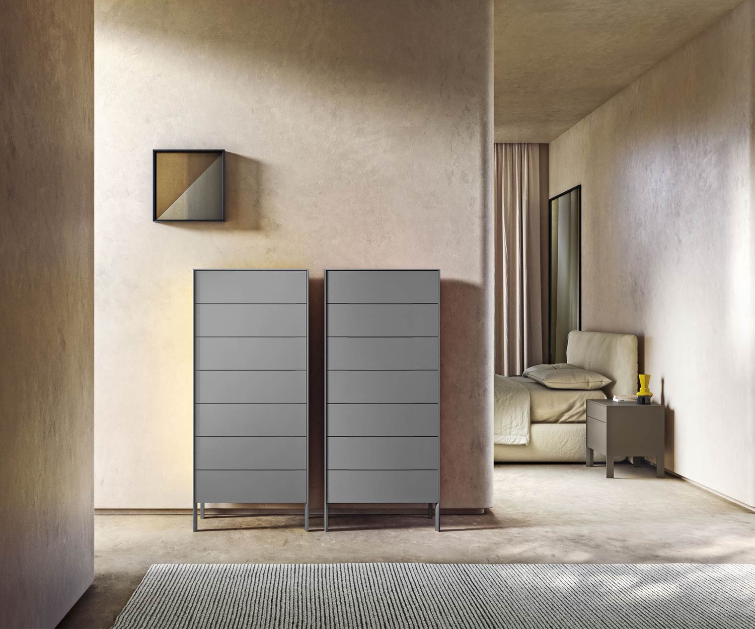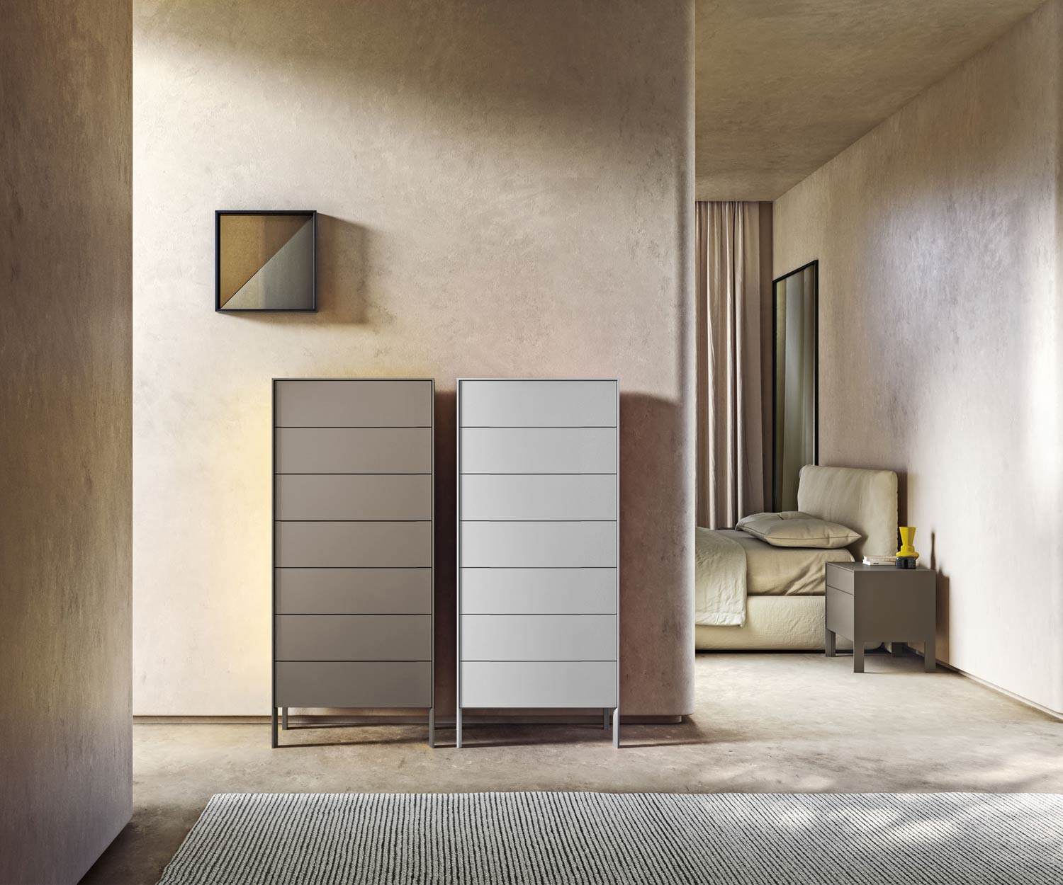 L'intérieur de la commode haute Capo d'Opera Another Day est en mélamine. Les côtés extérieurs et les façades sont constitués d'un panneau MDF de haute qualité et sont laqués mat.