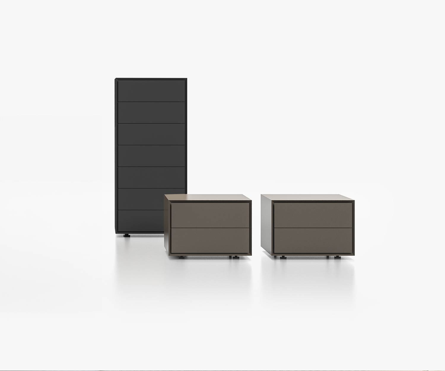 Disponible en différentes tailles, la collection Quarantacinque s'adapte en toute flexibilité à vos besoins, que ce soit comme chevet stylé ou comme élégante commode oucommode haute dans la chambre à coucher. Son esthétique discrète mais marquante s'intègre parfaitement dans tout intérieur et ajoute une touche de charme luxueux et moderne à votre pièce.
