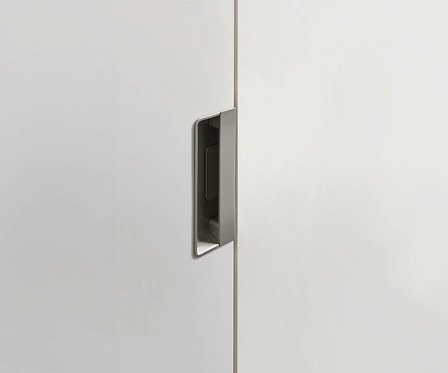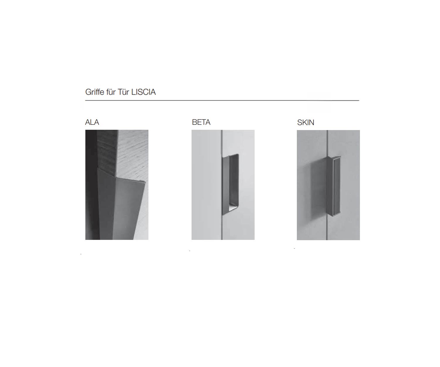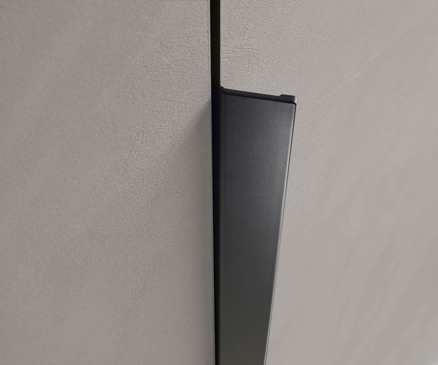 L'armoire Liscia est équipée en standard d'une poignée rapportée.