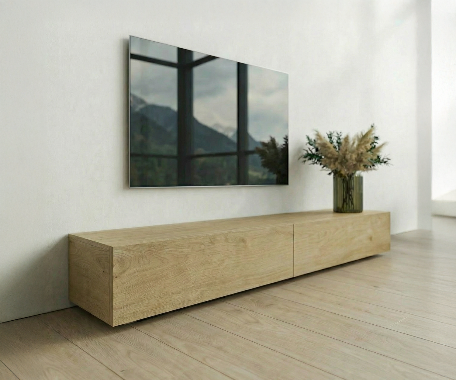 Le plateau de finition est toujours d'une seule pièce et a la même largeur que le lowboard. Selon la largeur, ce lowboard peut être commandé avec un équipement individuel. Vous souhaitez placer un lecteur DVD ou un récepteur AV dans votre nouveau lowboard TV ou vous avez besoin d'un passage de câbles ? Pas de problème ! Un conseiller personnel vous contactera après l'achat et discutera avec vous de la position optimale du chemin de câbles. Tous les chemins de câbles sont inclus dans le prix. Prémonté de manière professionnelle et livré dans les délais. Vous avez le choix entre des étagères, des chemins de câbles ou des tiroirs. Le meilleur : tous les extras sont déjà inclus dans le prix.