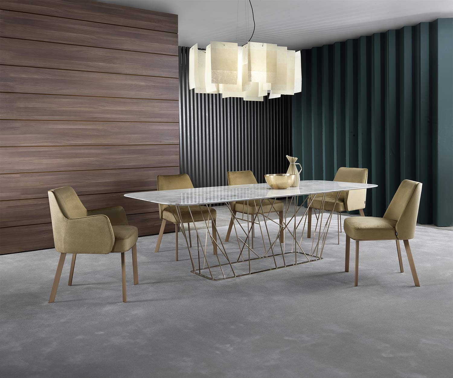 Marelli Twig Table de salle à manger en marbre L 240 x 120 / H 74 cm Calacatta couleur or Structure laiton or sans imprégnation