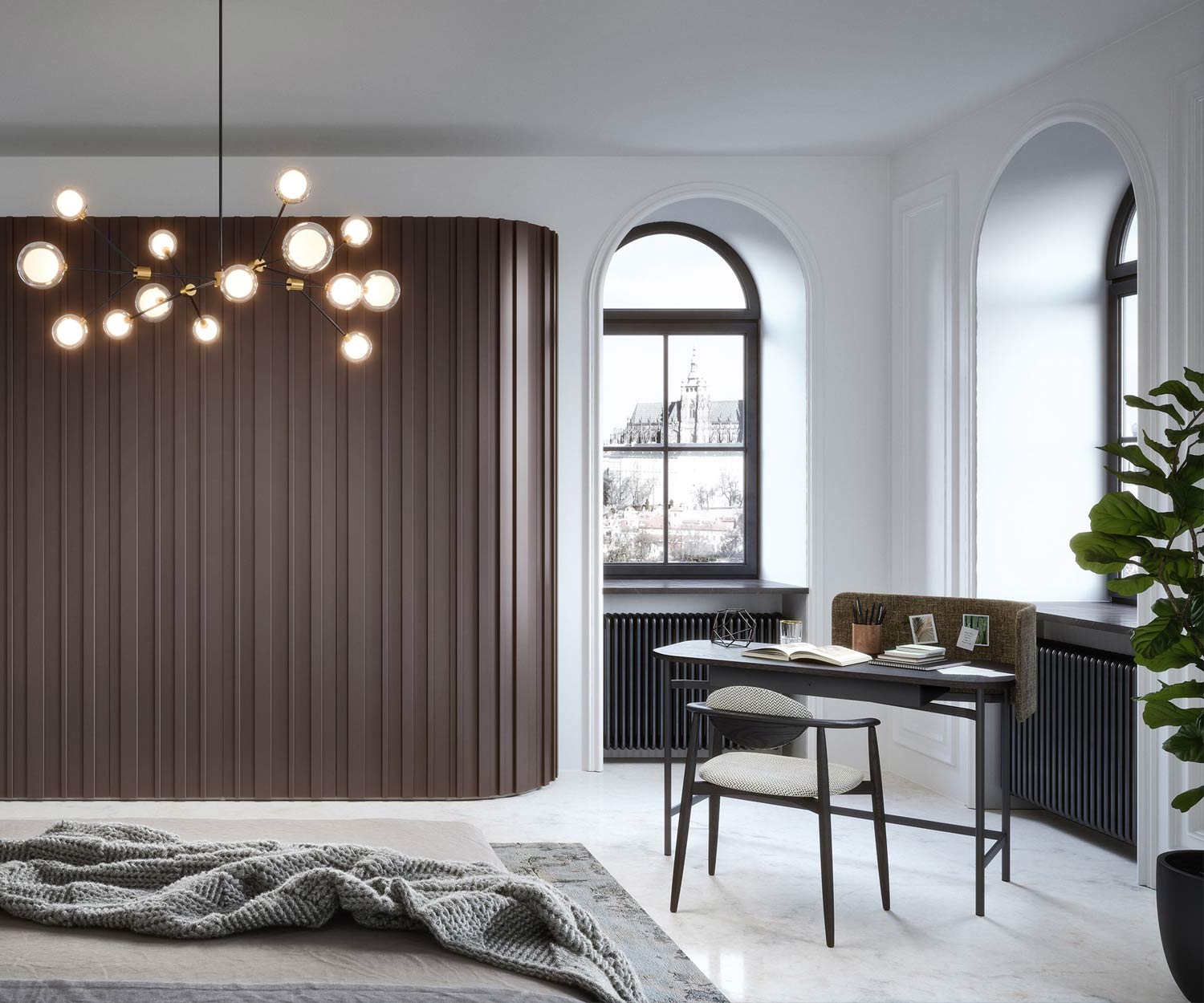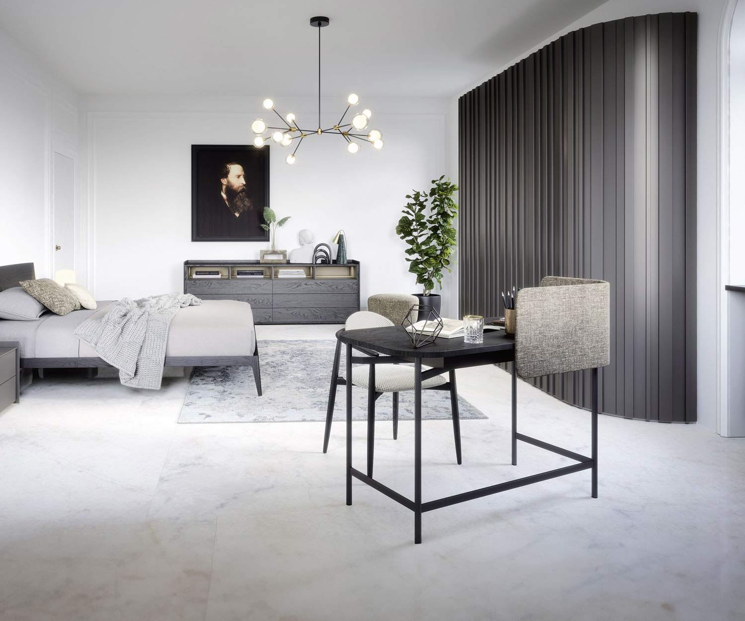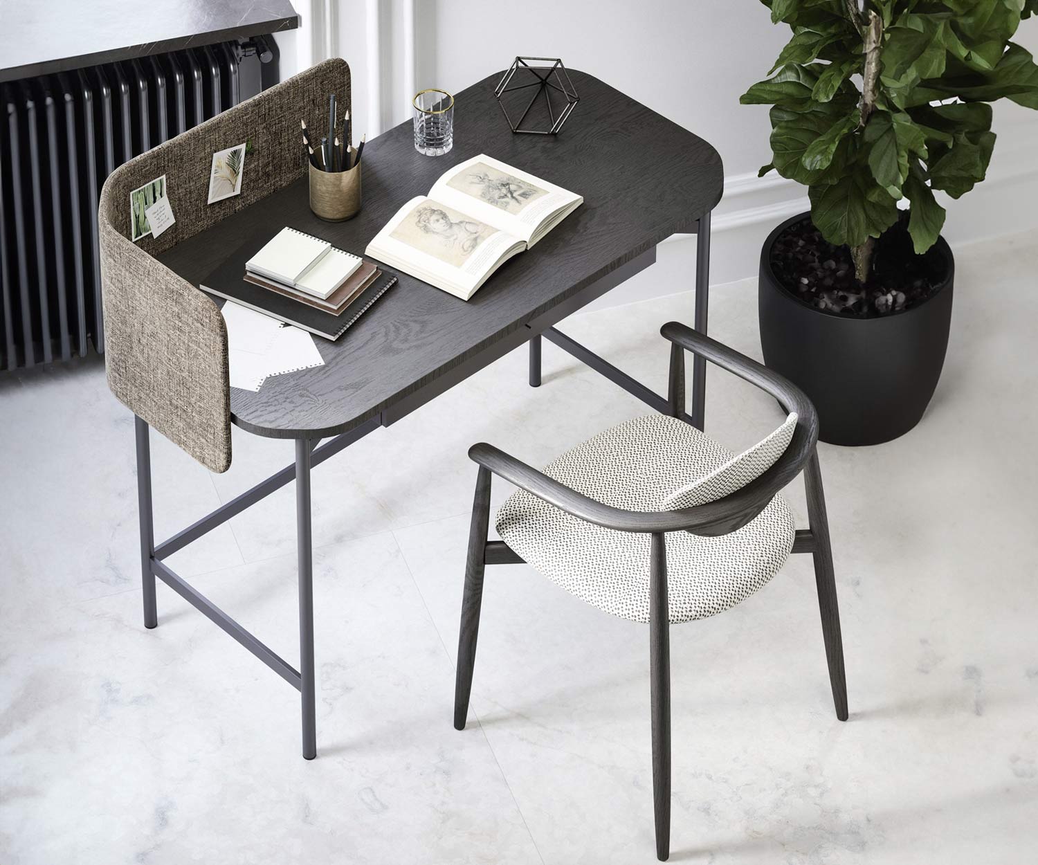 La combinaison du chêne carbone foncé et du tissu noble donne du goût et une élégance stylée à votre chambre ou à votre bureau.