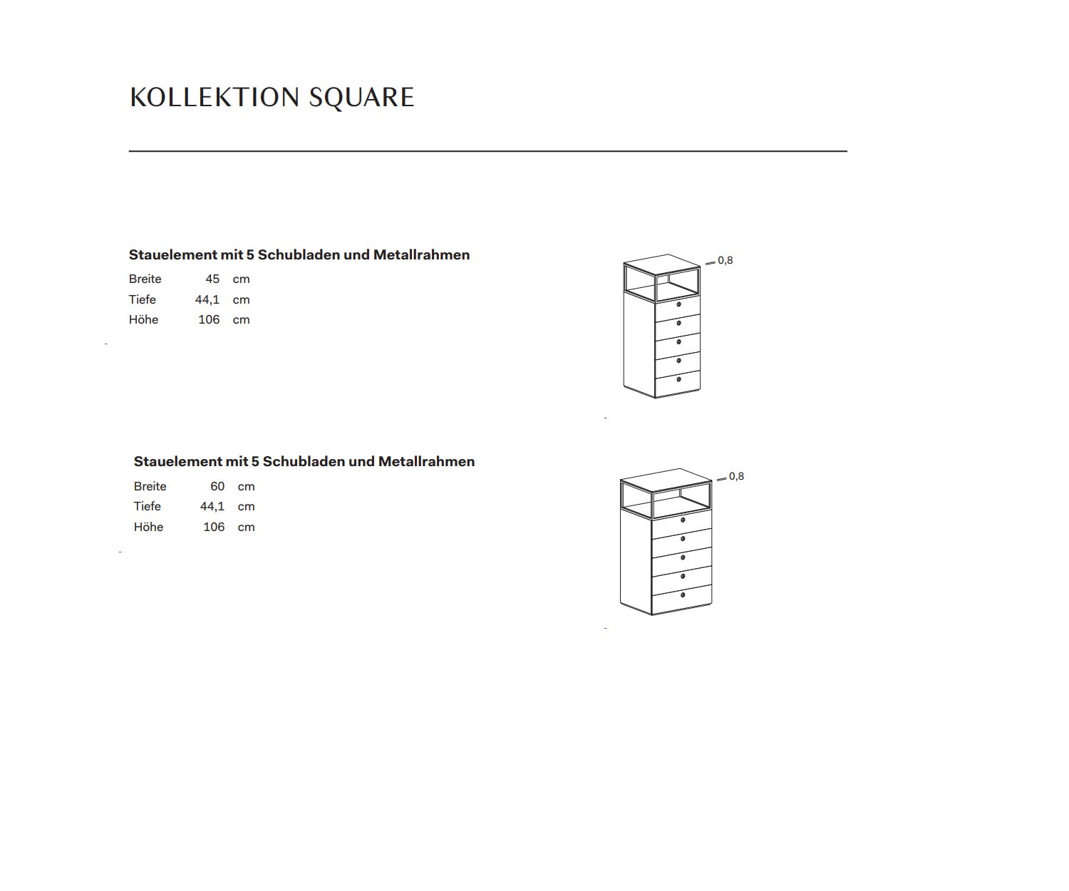 L'élégant cadre métallique qui réunit les tiroirs et les compartiments ouverts en un ensemble harmonieux est caractéristique de Square. Il en résulte un jeu captivant de structure, de légèreté et de fonctionnalité - parfait pour les salons et les chambres à coucher modernes.