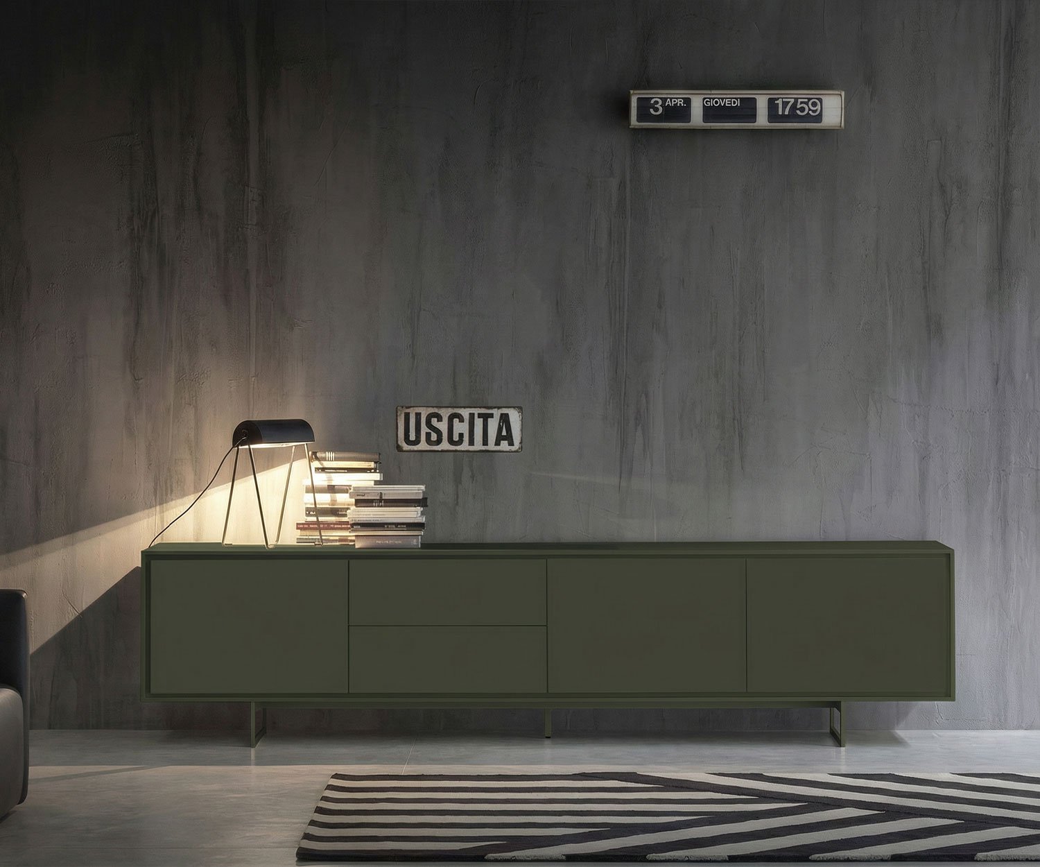 Le sideboard est disponible en 6 couleurs mates . Pour un contraste particulier, la façade et le corps de l'ombre peuvent être combinés dans différentes finitions de couleur.