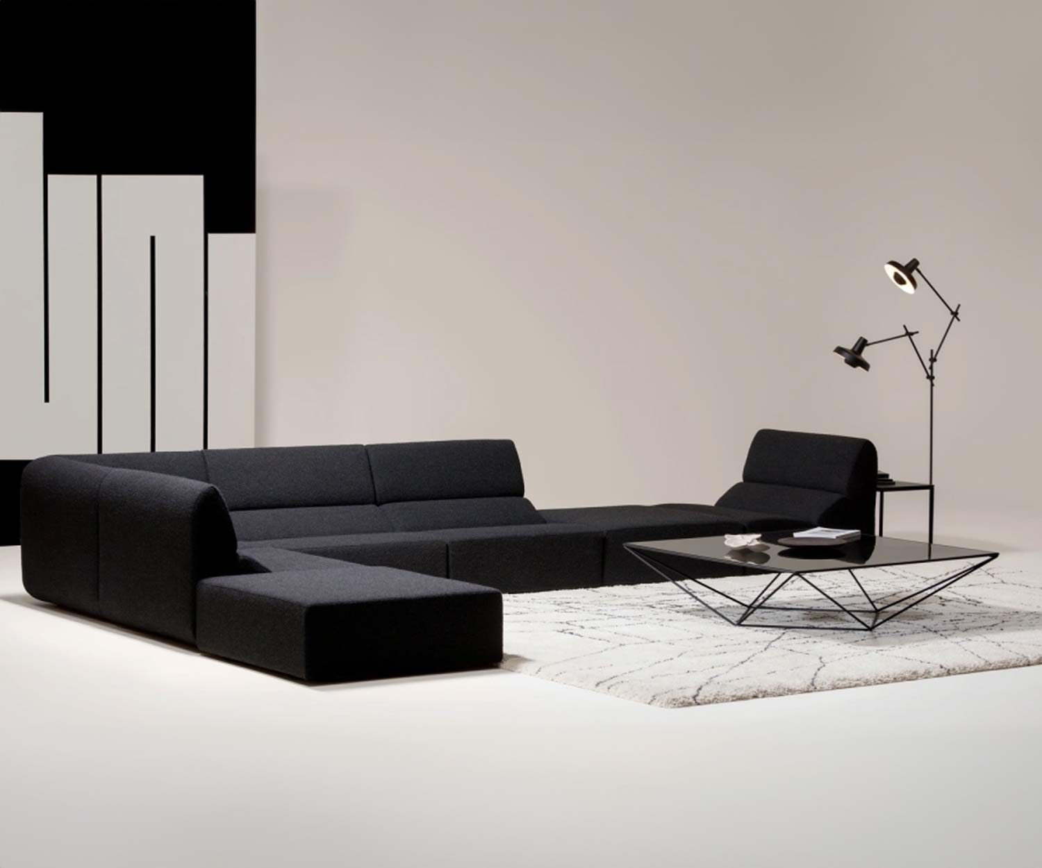 Le plateau de table en verre teinté gris Persol est monté sur une structure métallique étroite. Les tiges métalliques du piètement, d'un diamètre de 10 mm, s'unissent pour former un angle de 45 degrés avec la base. Ce design raffiné crée une structure cristalline qui fait de la table basse Avet un point de mire dans chaque pièce. Le nom "Avet", qui signifie "spectre" ou "fantôme", est un hommage à l'apparence apparemment dématérialisée de la table. La structure en métal revêtu par poudre est peinte en noir mat (RAL 9005).