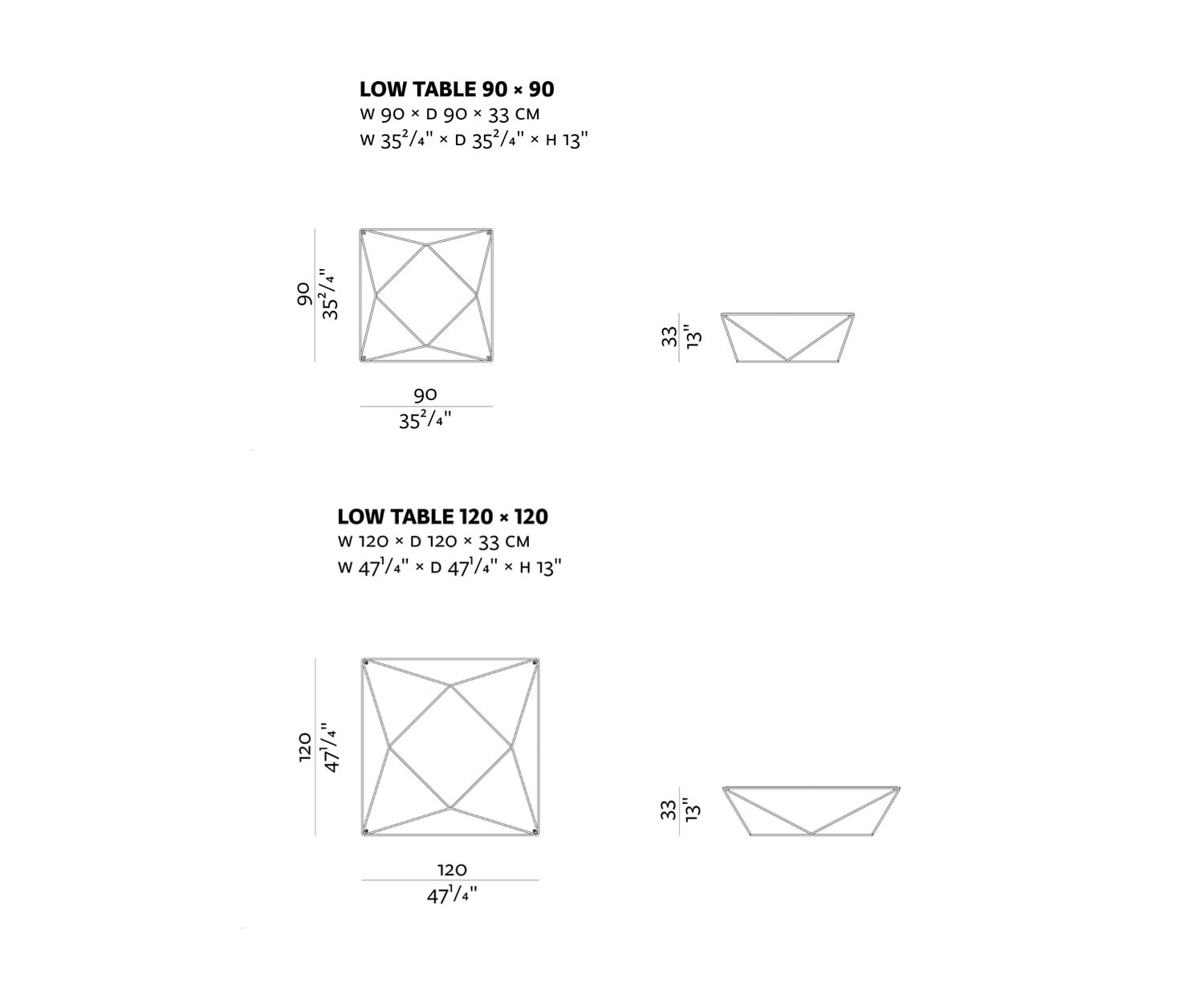 L 90 cm / H 33 cm / P 90 cm