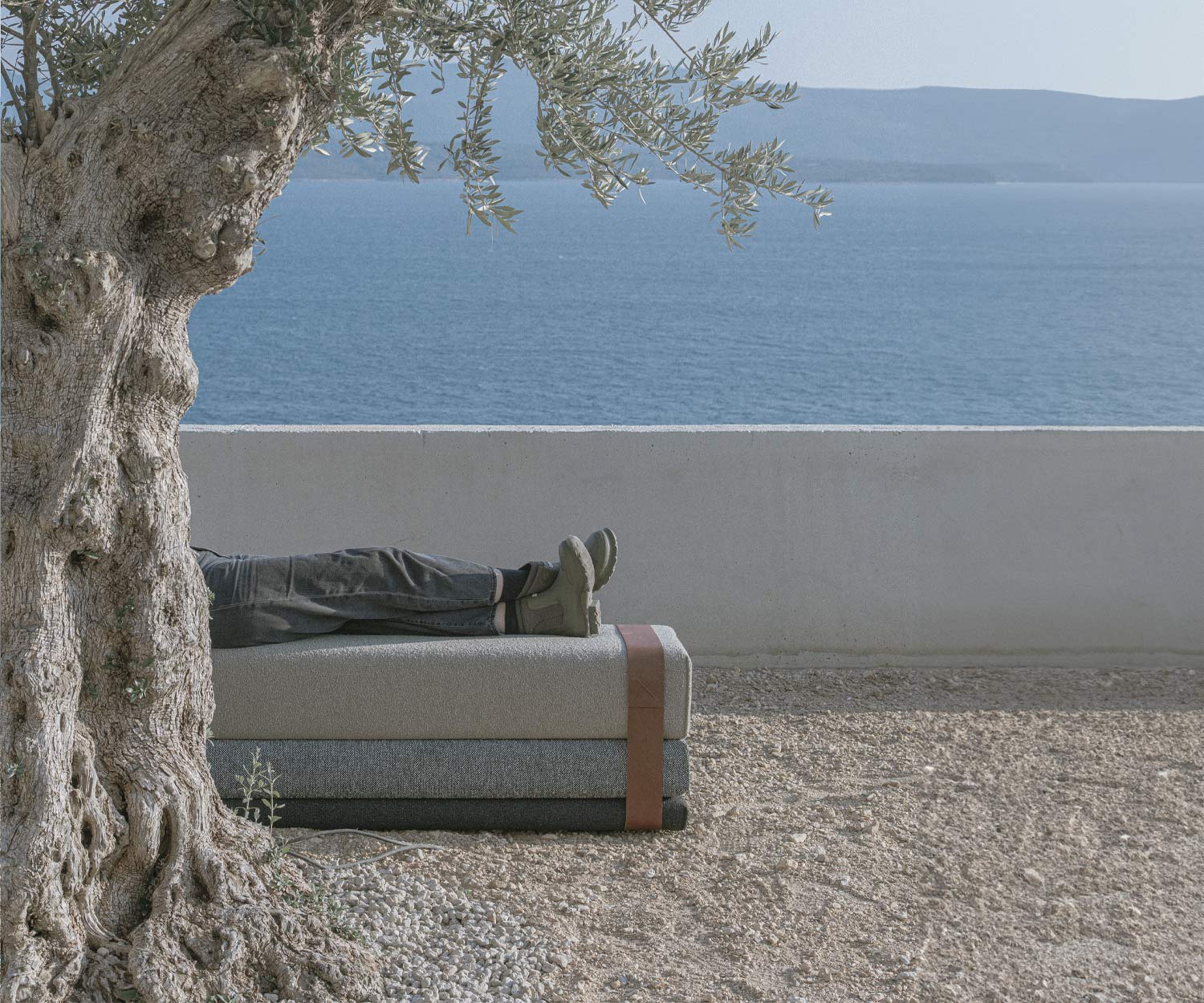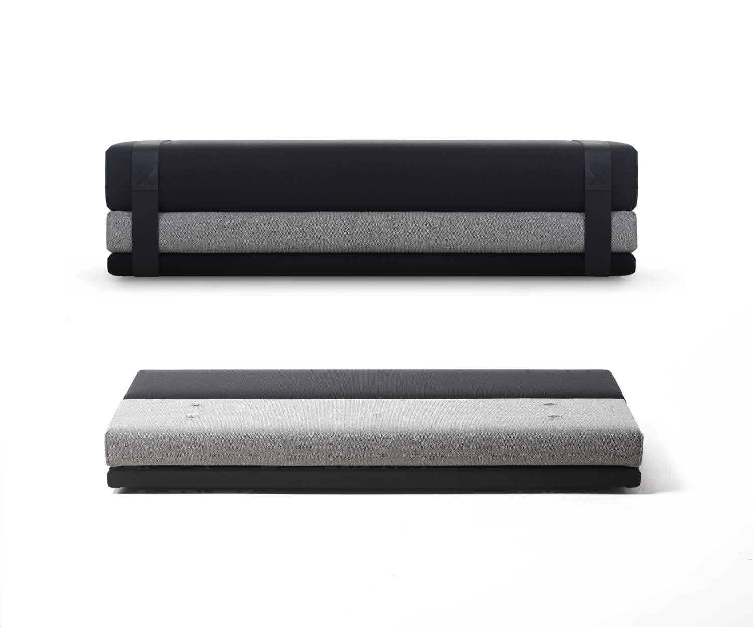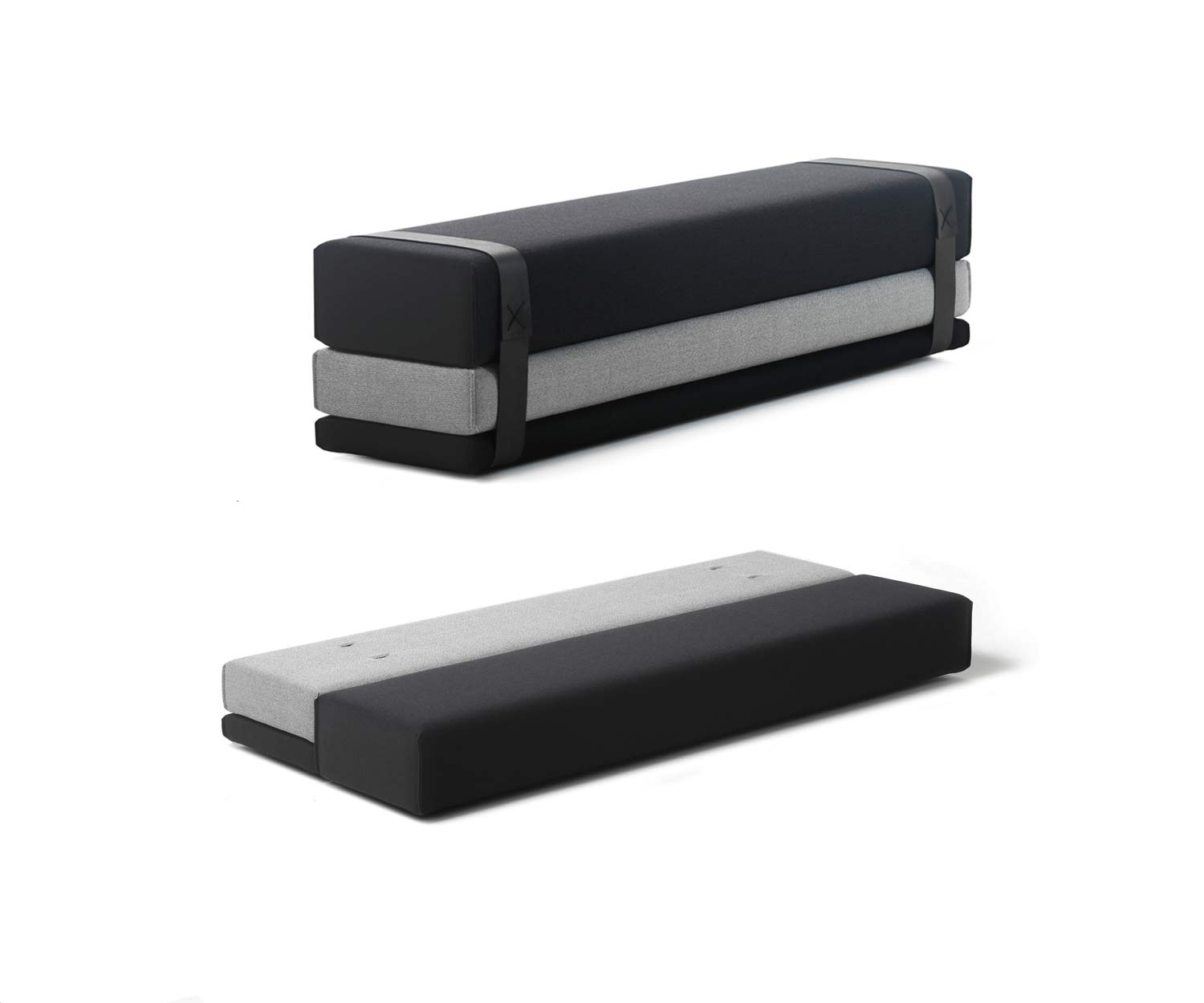 L'identité visuelle de la banquette Bavul se caractérise par des couleurs neutres et des lignes épurées. Le revêtement du canapé-lit est disponible en 3 combinaisons de couleurs : dans les finitions de couleur beige, gris et vert - beige, gris clair et gris foncé - gris foncé, gris clair et noir.