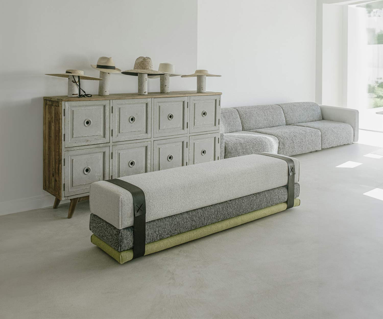 Grâce à ses dimensions généreuses, la banquette Bavul est particulièrement adaptée à la maison moderne ou aux projets d'accueil minimalistes où l'espace doit être économisé. C'est un meuble pratique et élégant qui peut servir de siège, de lit supplémentaire ou de matelas pour les invités.