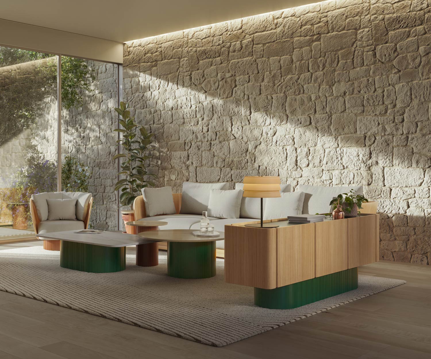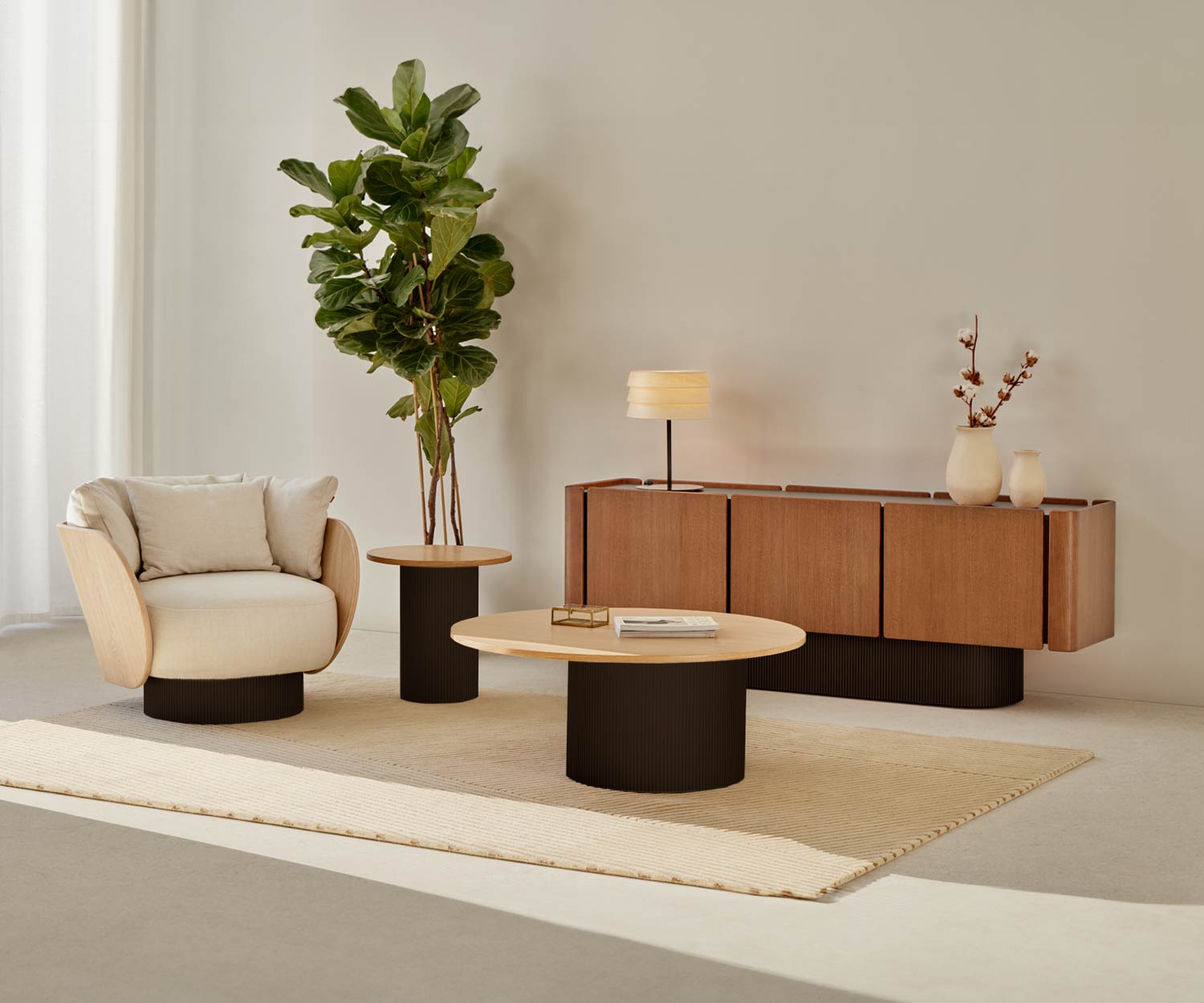 Les courbes caractéristiques et les lignes fluides reflètent le doux mouvement du vent et du sable et confèrent au meuble une esthétique intemporelle et harmonieuse.