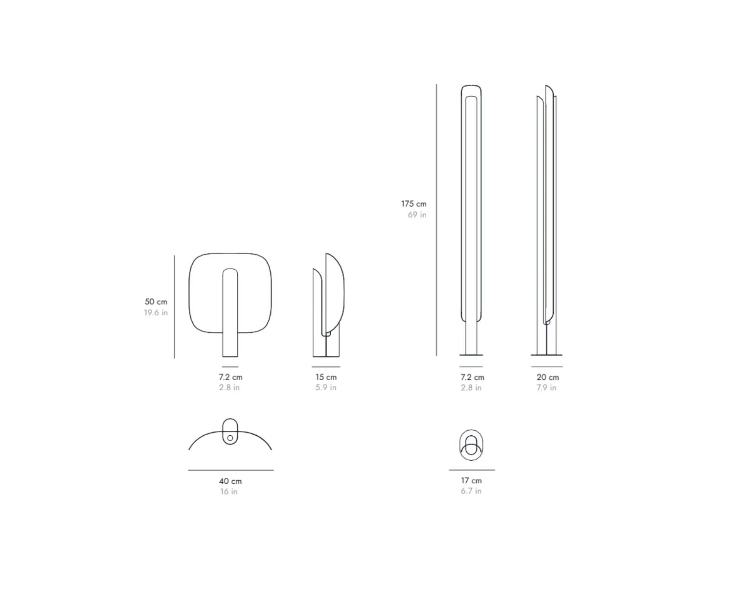 L 17 cm / H 175 cm / P 20 cm | lampadaire