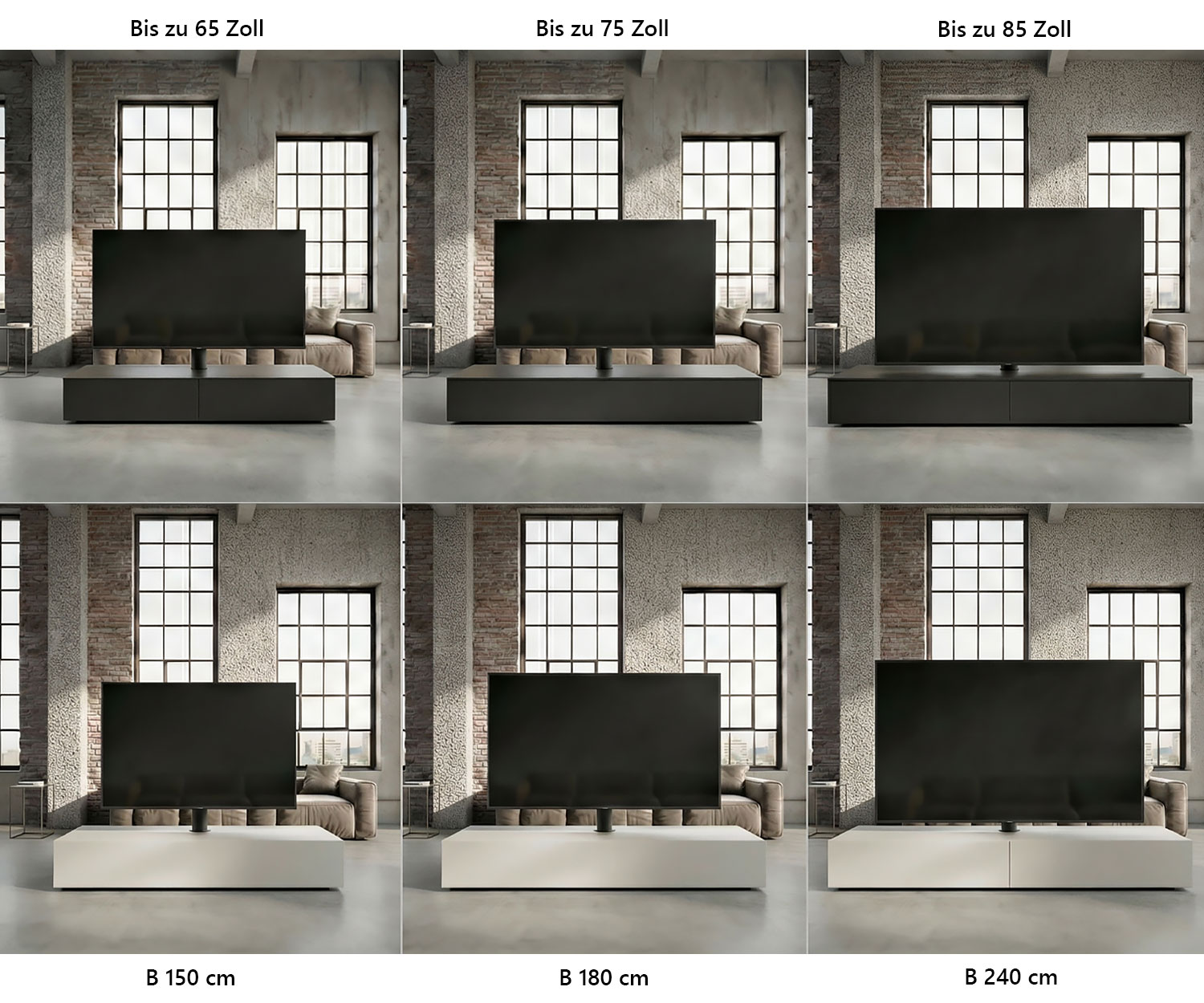 Prüfen Sie die Kompatibilität Ihres 85-Zoll-Fernsehers mit unserem 24 cm hohem Lowboard und der mitgelieferten Halterung.