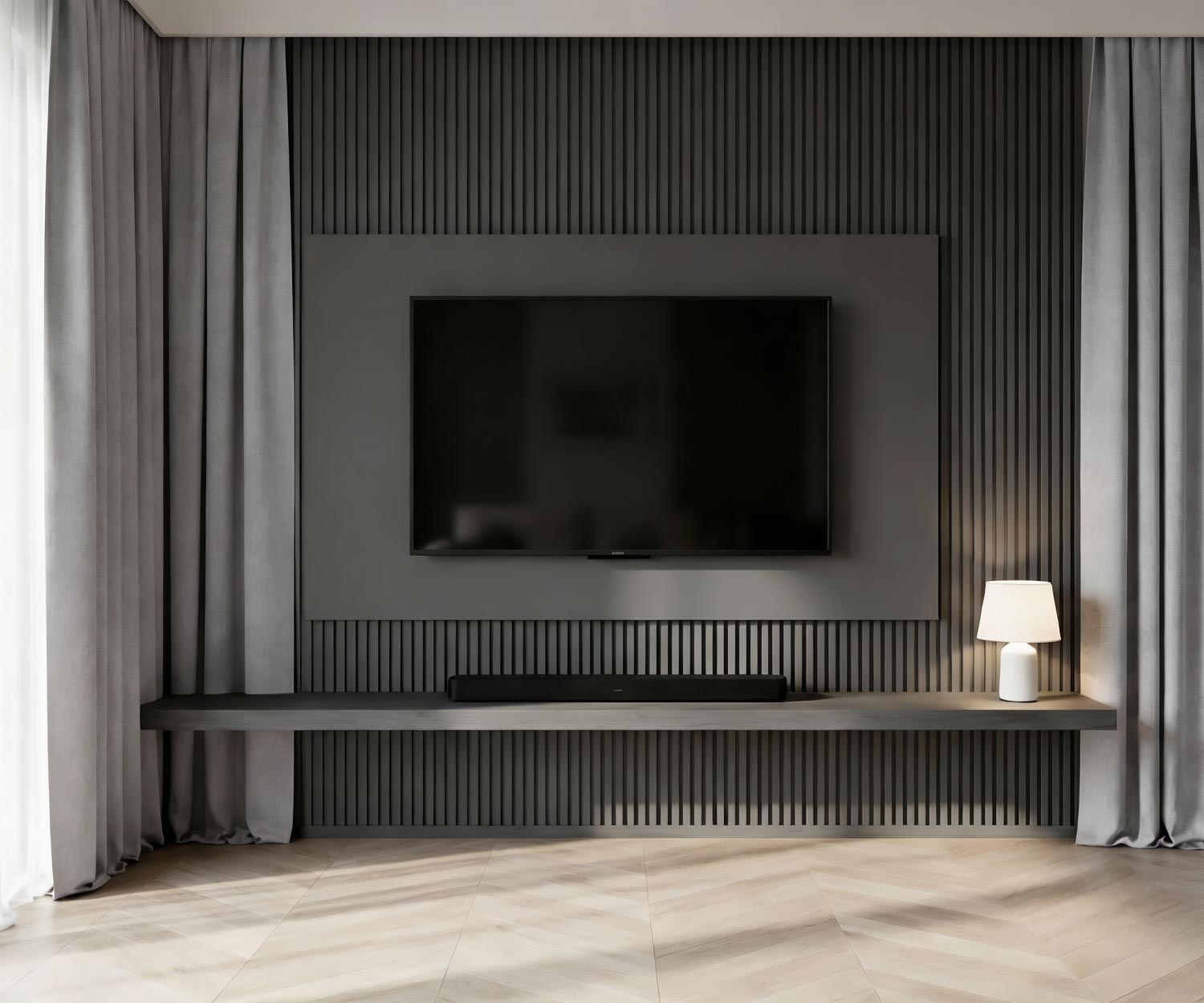 Mein TV hat ein neues Zuhause gefunden. Wirklich schöne Verarbeitung. Das dunkelgrau sieht richtig gut aus. Mit der Beleuchtung wirkt das Paneel einfach unglaublich hip.
