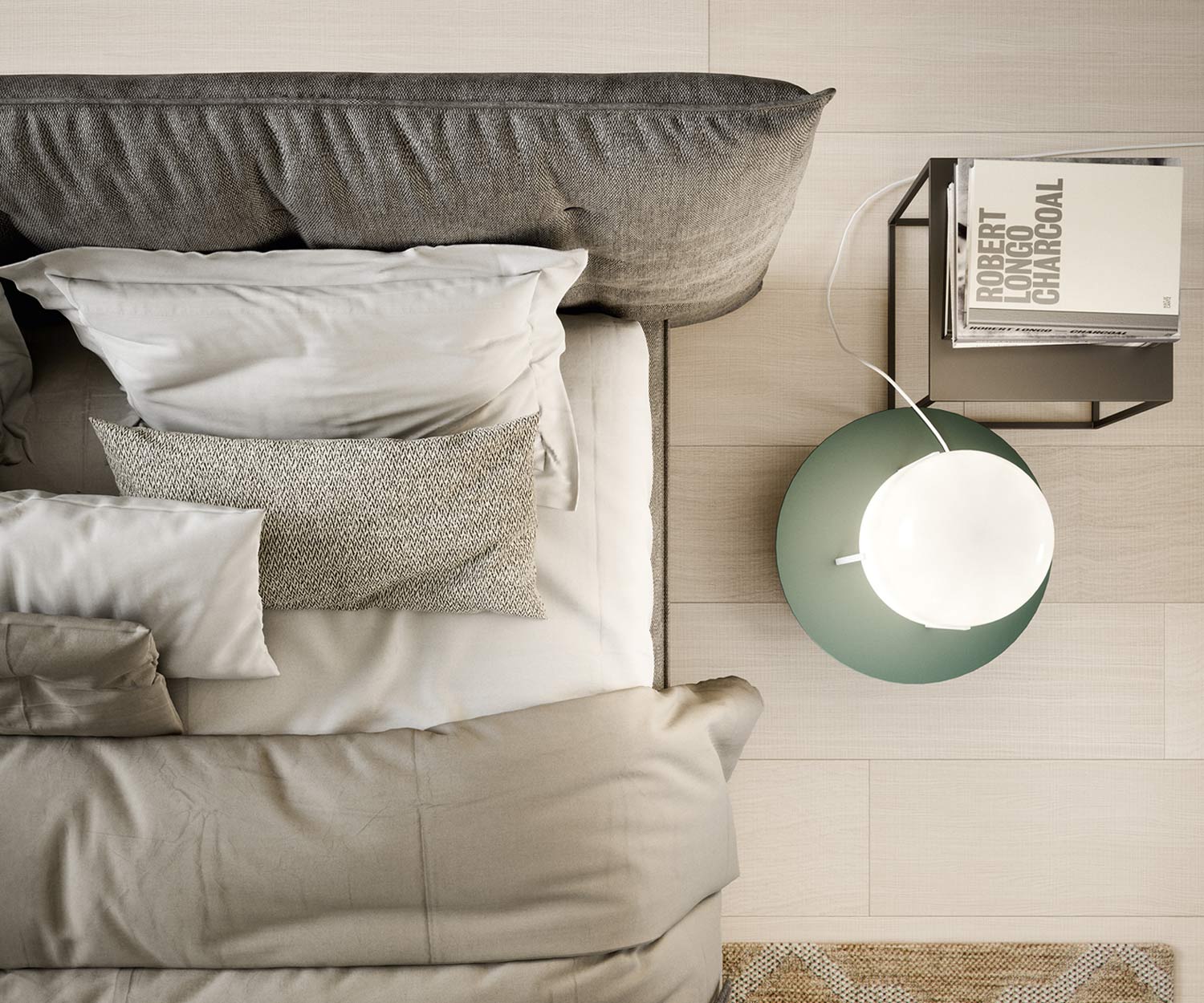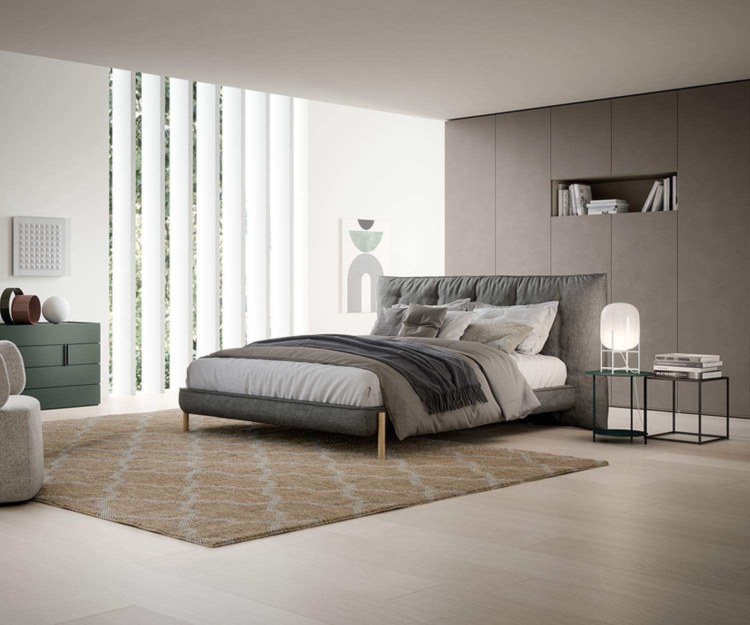 Das Bett Tufte von Novamobili ist in 2 Größen erhältlich, mit einer Liegefläche von B 160 cm x L 200 cm oder B 180 cm x L 200 cm.
