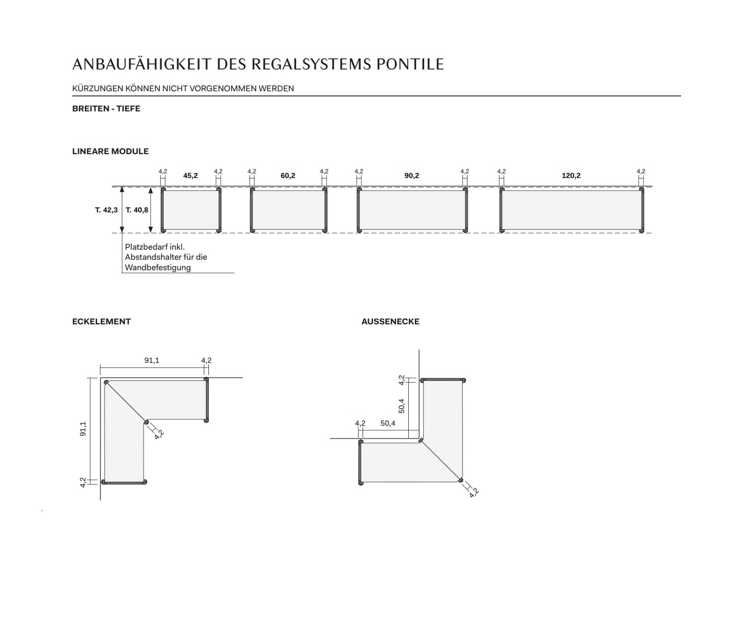 Modulbreiten: 45,2 – 60,2 – 90,2 - 120,2 cm