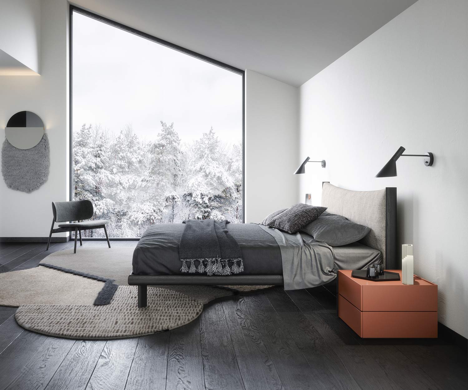 Je nach Schlafzimmerdekoration kann das Novamobili Mizu Designer Polsterbett in 3 Farben produziert werden. Zur Auswahl stehen: Beige, Hellgrau und Dunkelgrau.