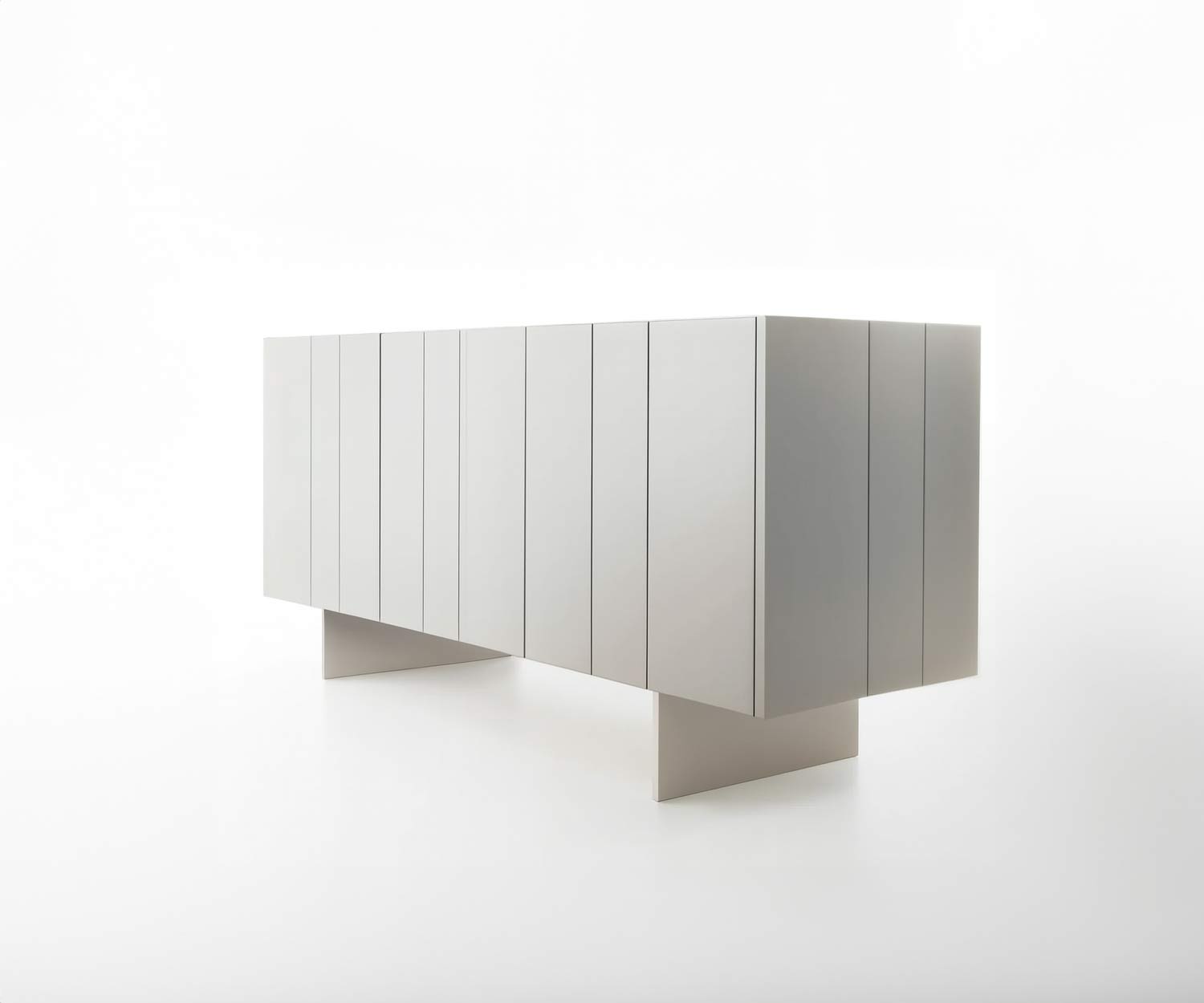 Der Korpus des Stripe Sideboard besteht aus hochwertigen Holzspanplatten der Klasse E1 mit niedriger Formaldehydemission. Diese werden mit einer Melaminschicht versehen und mit umweltfreundlichem Lack 8x lackiert.