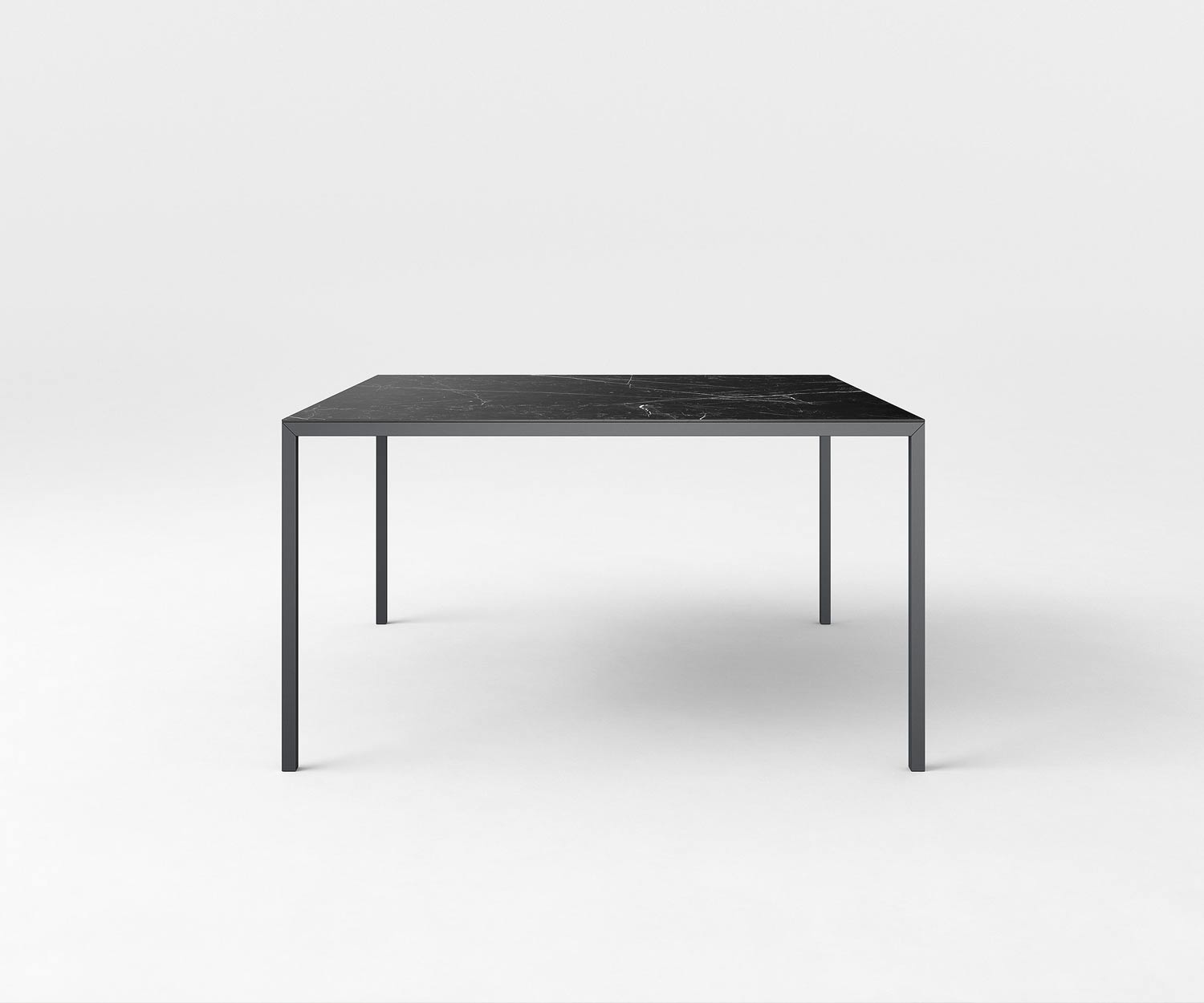 Zusätzlich gibt es die Tischplatte als Feinsteinzeug in Light Stone Nero R02, ein hartes, kompaktes und wasserfestes Keramikprodukt in Marmor Glanzoptik.