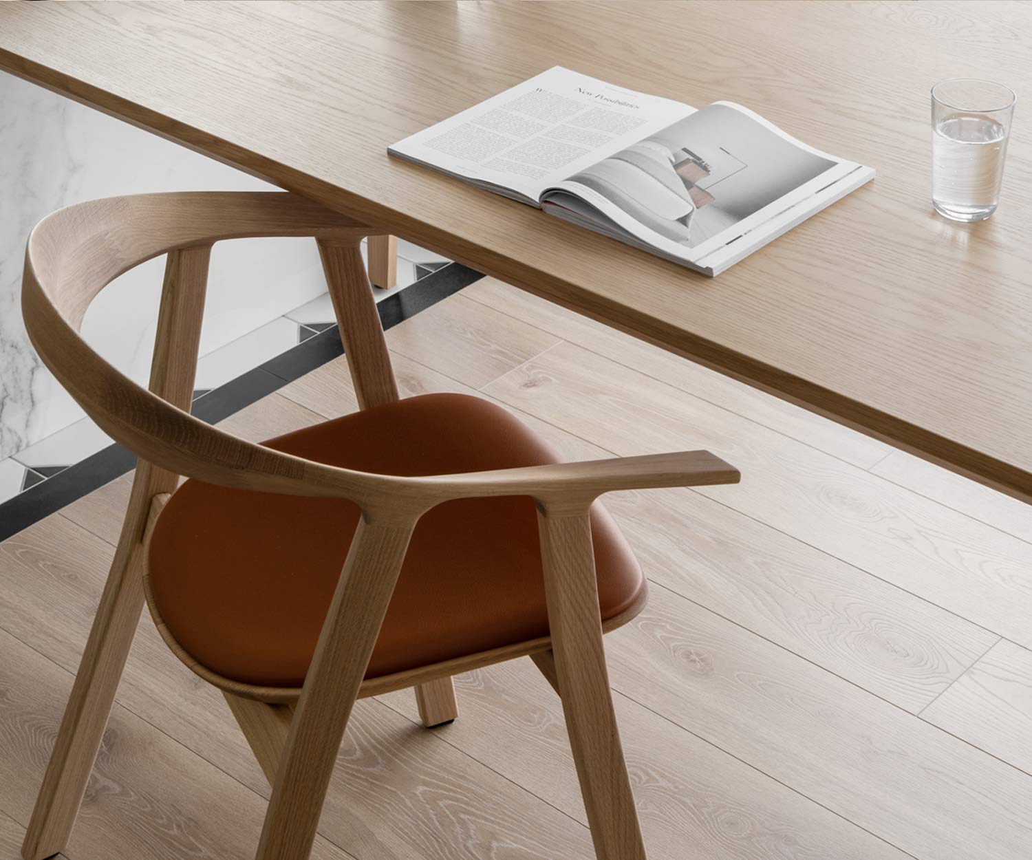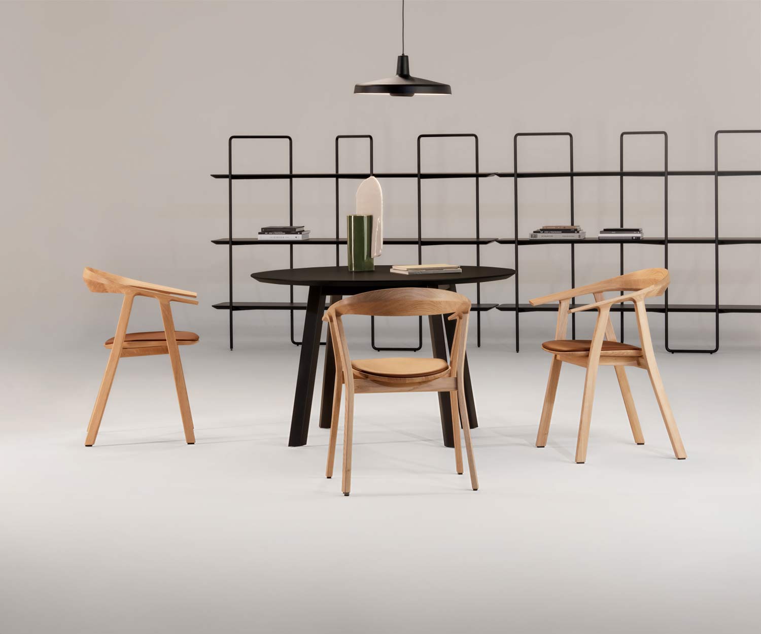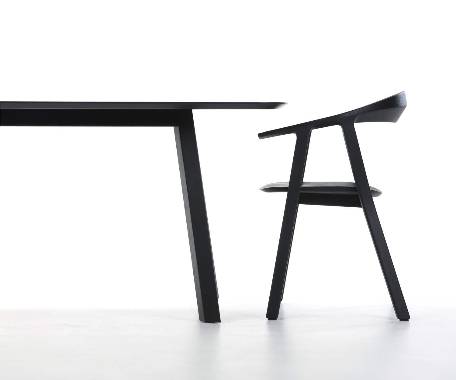 Ich schätze das subtile Spiel der schmalen und breiten Tischbeine, wodurch der Tisch aus verschiedenen Blickwinkeln einen besonderen Charakter erhält.