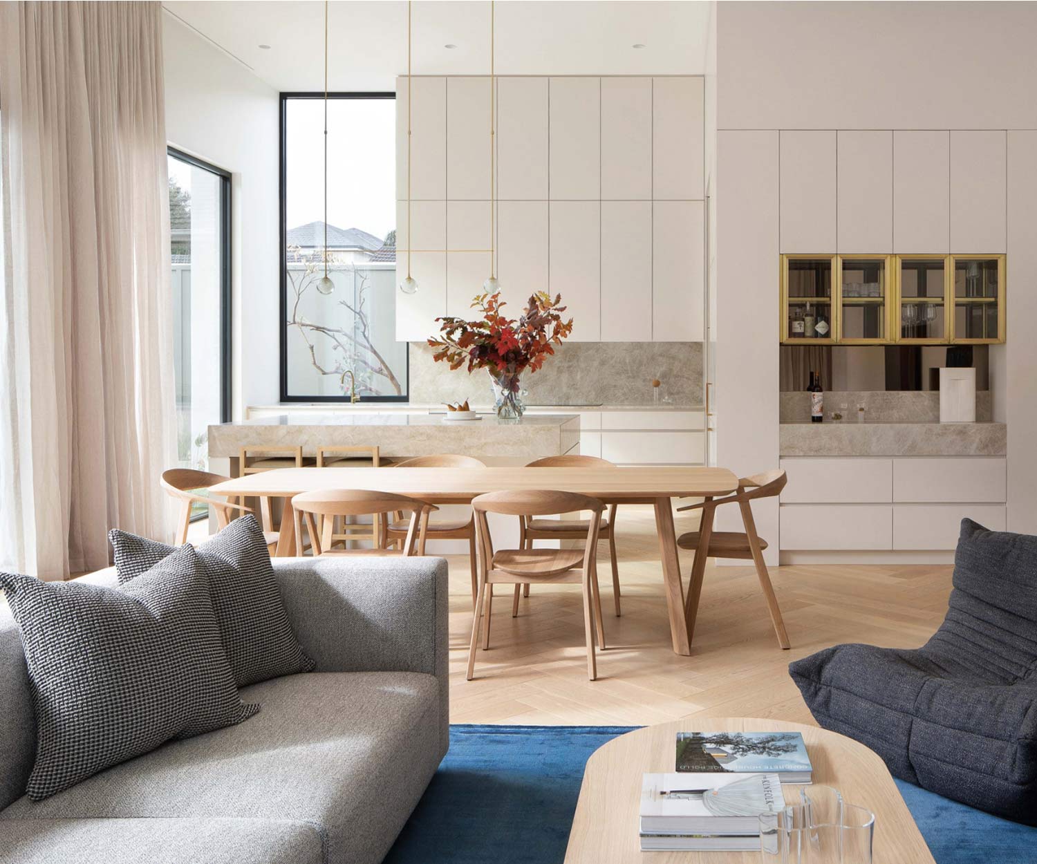 Diese Beine sind diagonal zu den Tischecken angeordnet und schaffen eine spannende visuelle Dynamik. Aus der Ecke betrachtet wirken zwei Beine filigran und schmal, während die anderen eine breitere, kraftvolle Präsenz zeigen – eine harmonische Balance, die dem Tisch eine unverwechselbare Eleganz verleiht.