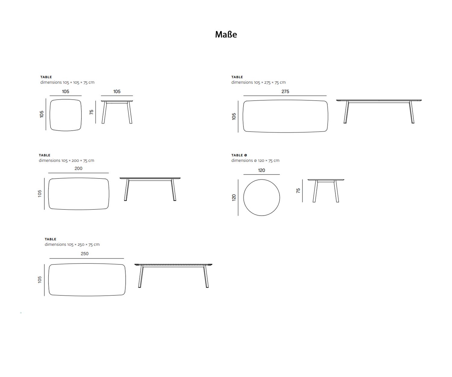 Der Prostoria Rhomb Esstisch ist in folgenden Maßen erhältlich: