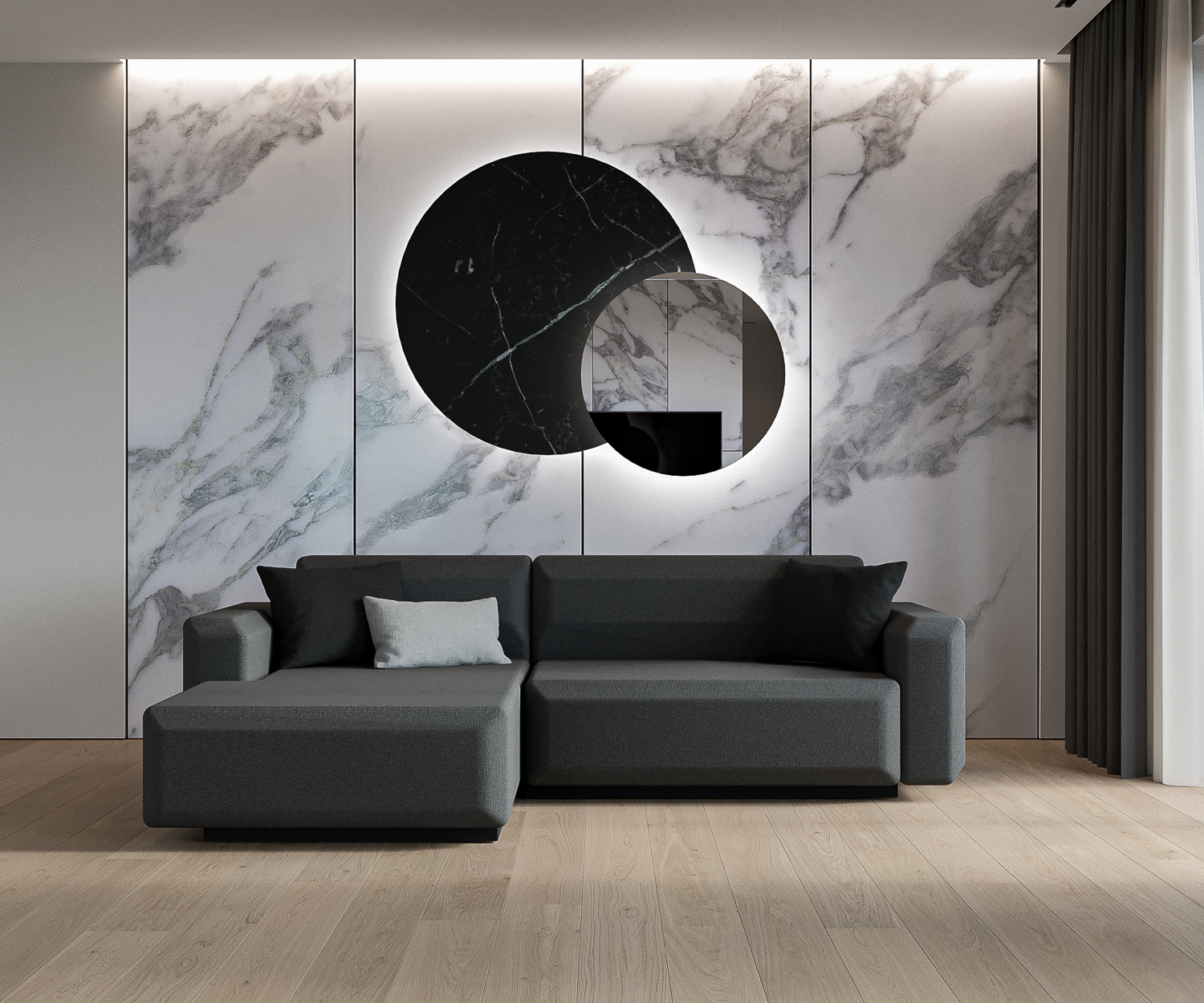 Modernes Schlafsofa Fade von Prostoria. Das futuristische Design überzeugt durch gerade Linien und einem funktionalen Unterbau. Die Sitzfläche kann bei Bedarf ausgezogen werden und zu einer großen Liegewiese verwandelt werden. Die komfortable Polsterung lädt nicht nur zum Sitzen ein, sondern kann auch prima als Schlafsofa genutzt werden.