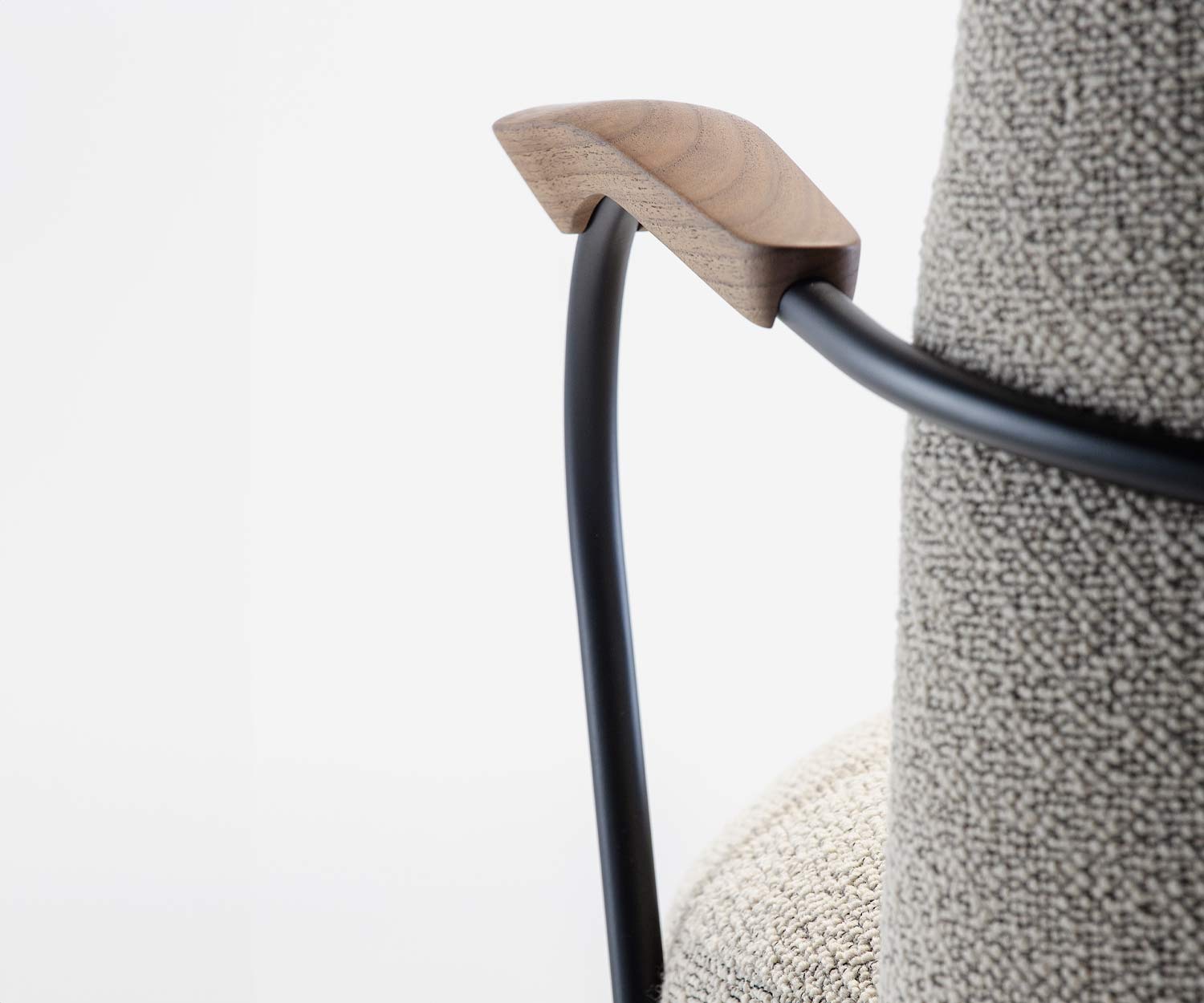 Die Basis des Sessels besteht aus einer stabilen schwarz lackierten Stahlkonstruktion mit Pulverbeschichtung, die für eine dauerhafte und elegante Standfestigkeit sorgt.