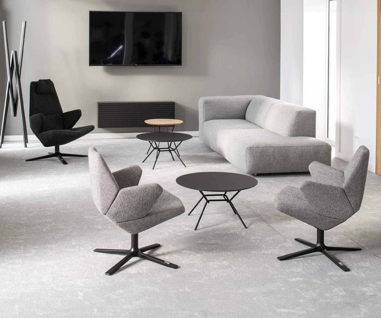 Alle Trifidae Designer Modelle verfügen über eine leicht geneigte Sitzposition, die den Körper entspannt in die richtige Position bringt. Gegenüber dem herkömmlichen Trifidae Sessel haben der Lounge Chair und der Ohrensessel eine erhöhte Rückenlehne mit Kopfkissen. Für eine bessere Abschirmung der Umgebung hat der Ohrensessel seitliche Flanken, die Ohren, die die Geräuschkulisse deutlich mindern.