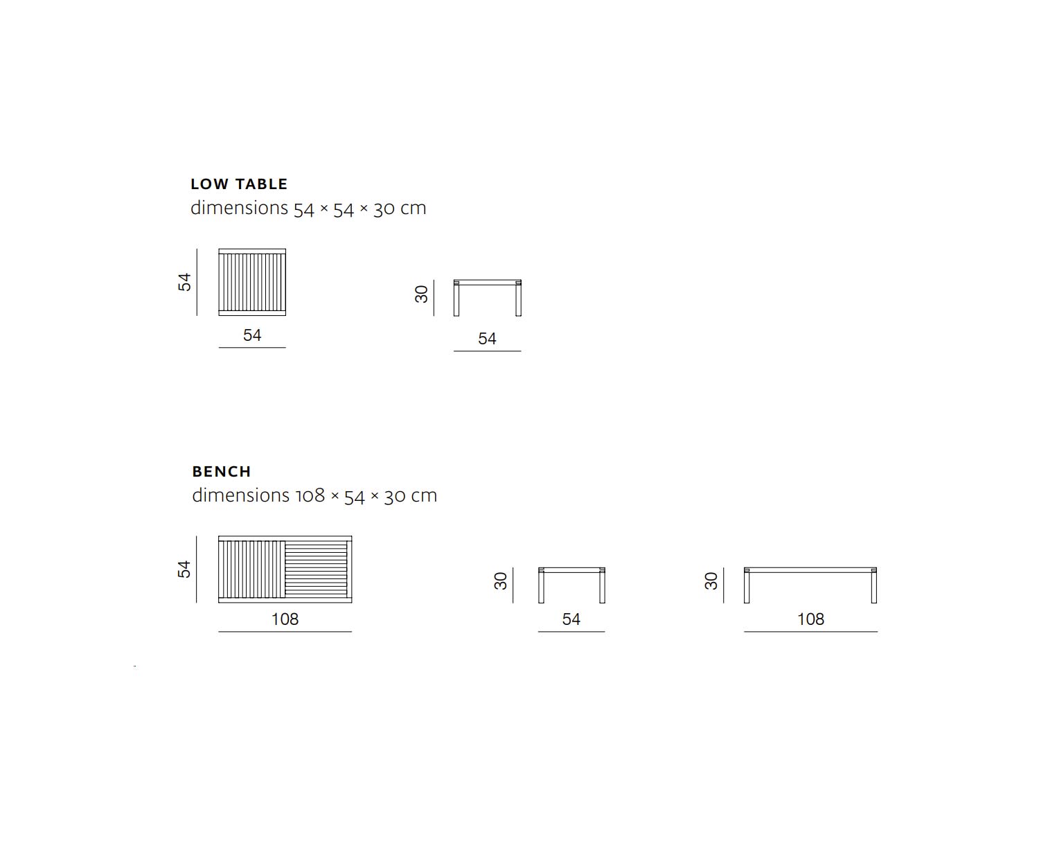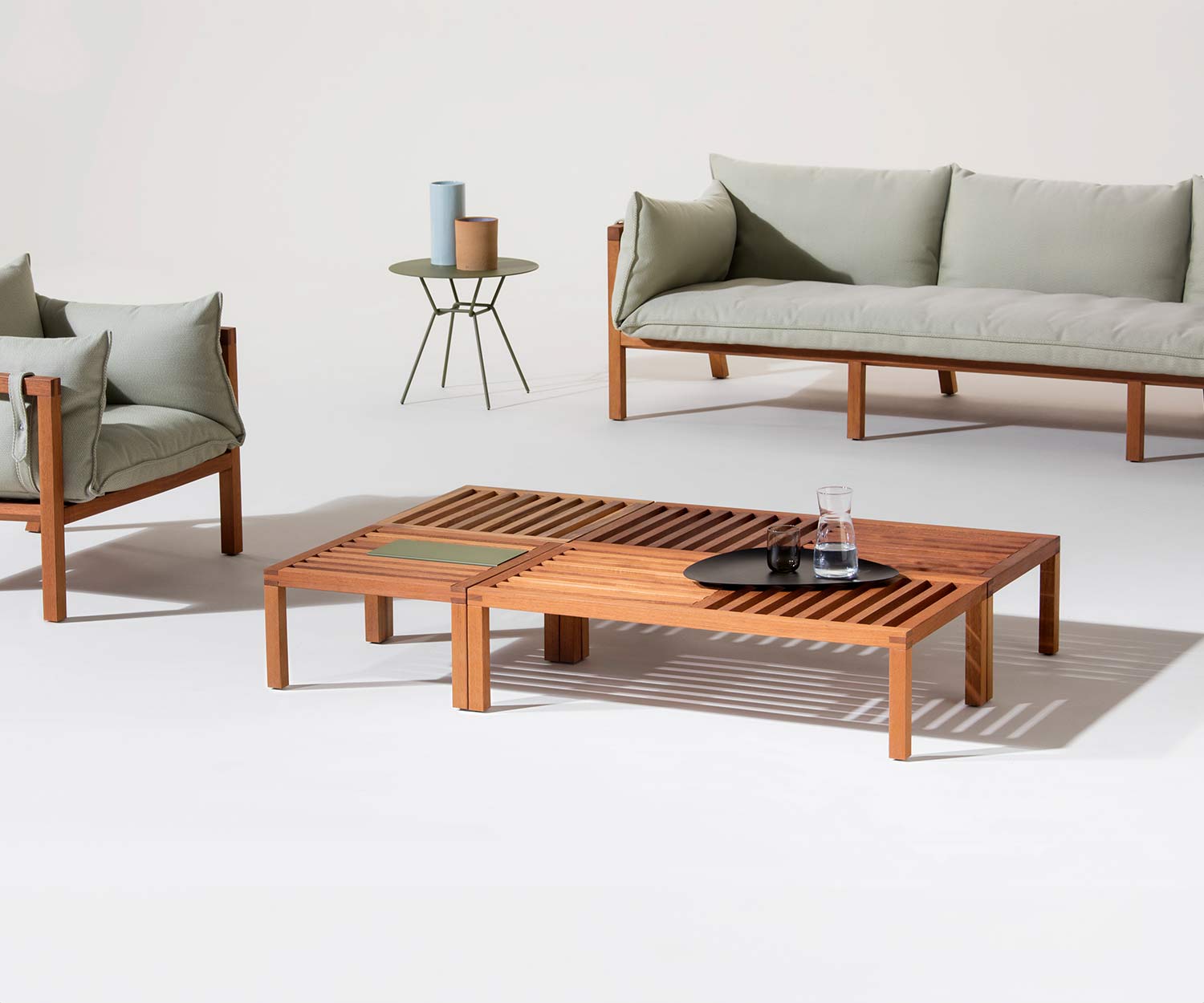 Die hochwertigen Umomoku Outdoor Möbel sind sowohl für den Innenbereich als auch für den Außenbereich geeignet. Die Bank und der Couchtisch sind vielfältig miteinander kombinierbar, sodass Sie mit mehreren Tischen einen großen Tisch zusammenstellen können. Der lange Tisch kann auch als Sitzbank verwendet werden.