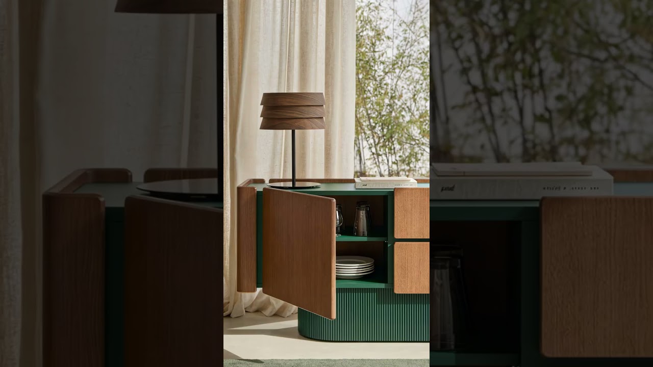 Der Korpus des Dune Sideboards ist aus strukturlackierten E1-MDF-Platten gefertigt und in zwei eleganten Farbvarianten erhältlich: klassisches Schwarz oder tiefes WaldgrünDiese kontrastieren dezent mit den warmen Holztönen der Fronten und verleihen dem Möbel eine moderne, doch ruhige Präsenz im Raum.
