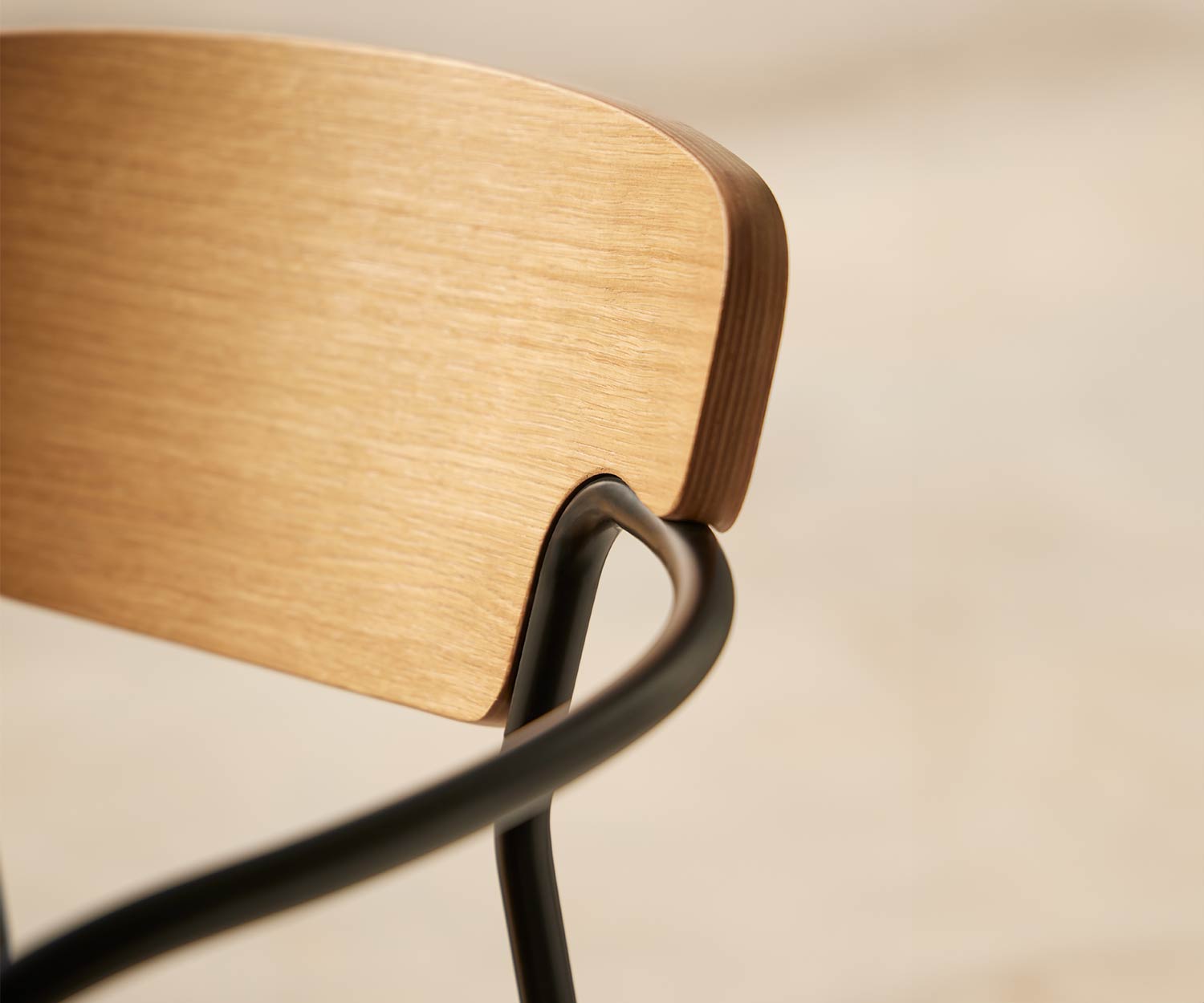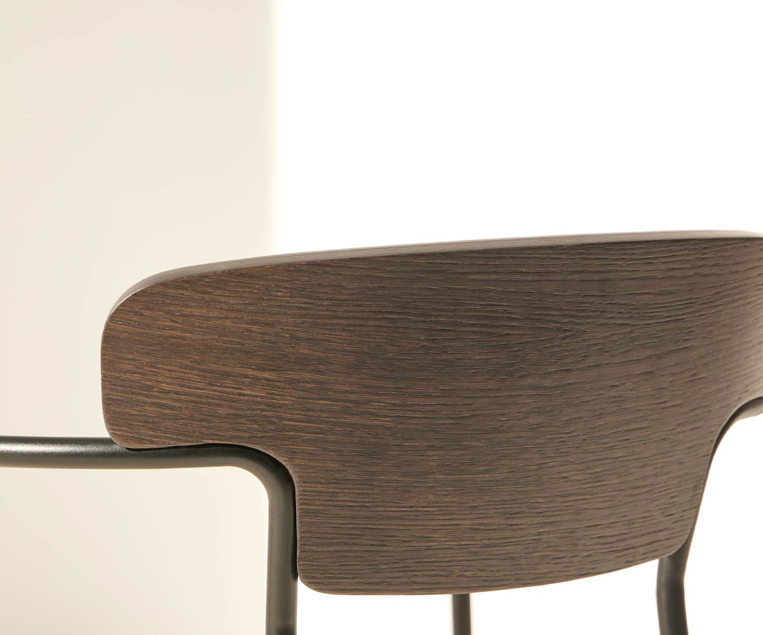 Der Punt Pecan Holzstuhl - designed von Sebastian Herkner - ist ein moderner Nussbaum Holzstuhl mit abgerundeten Armlehnen aus Stahl und runder Rückenlehne. Seine anschmiegsame Form sorgt für sehr guten Sitzkomfort.