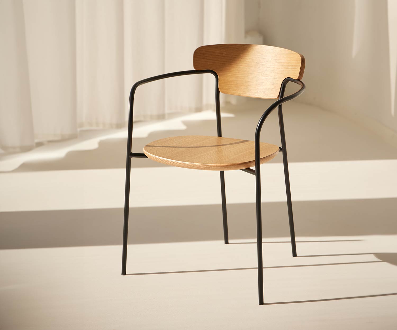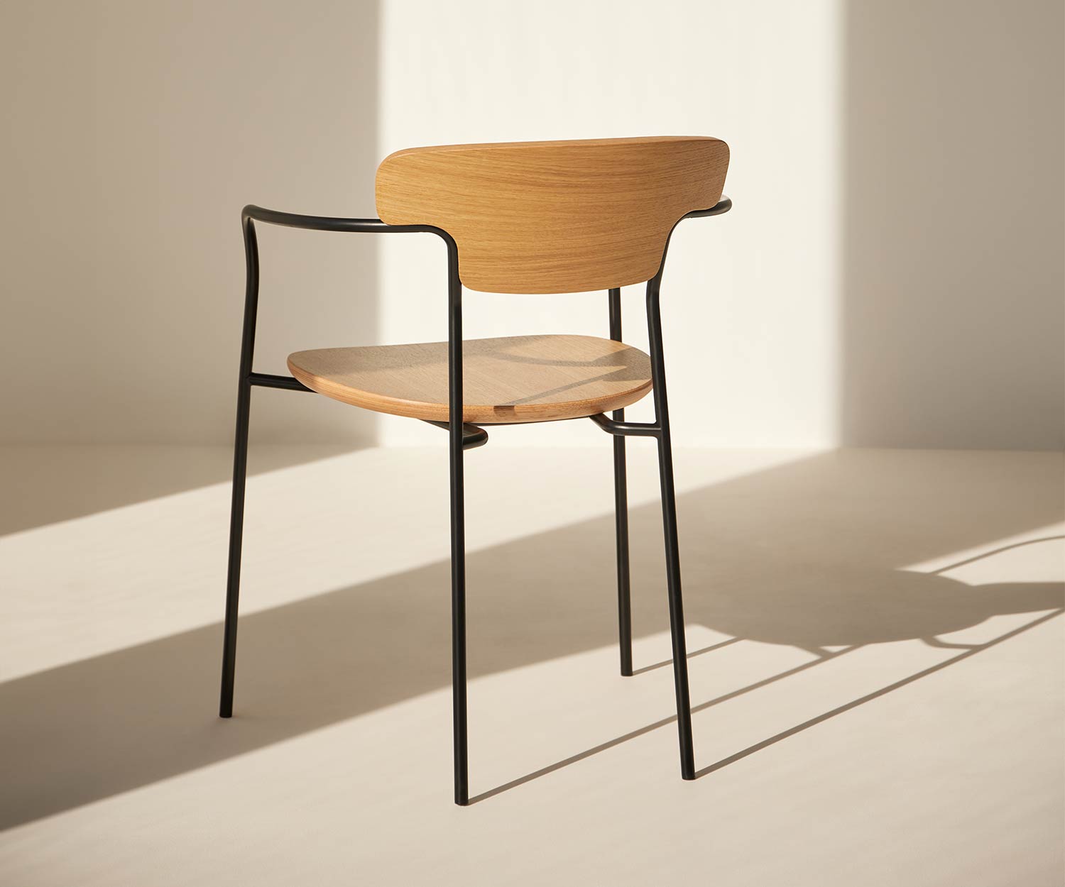 Erhältlich ist der Punt Pecan Holzstuhl im massivem Super Matt Eiche und Eiche Walnuss Gebeizt. Das Gestell und die Armlehnen sind aus Stahl und in Epoxy Schwarz lackiert.