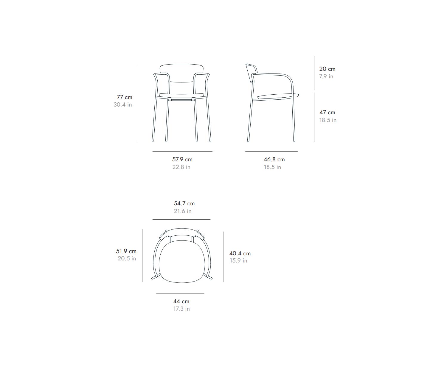 B 57,9 cm / H 77 cm / T 46,8 cm