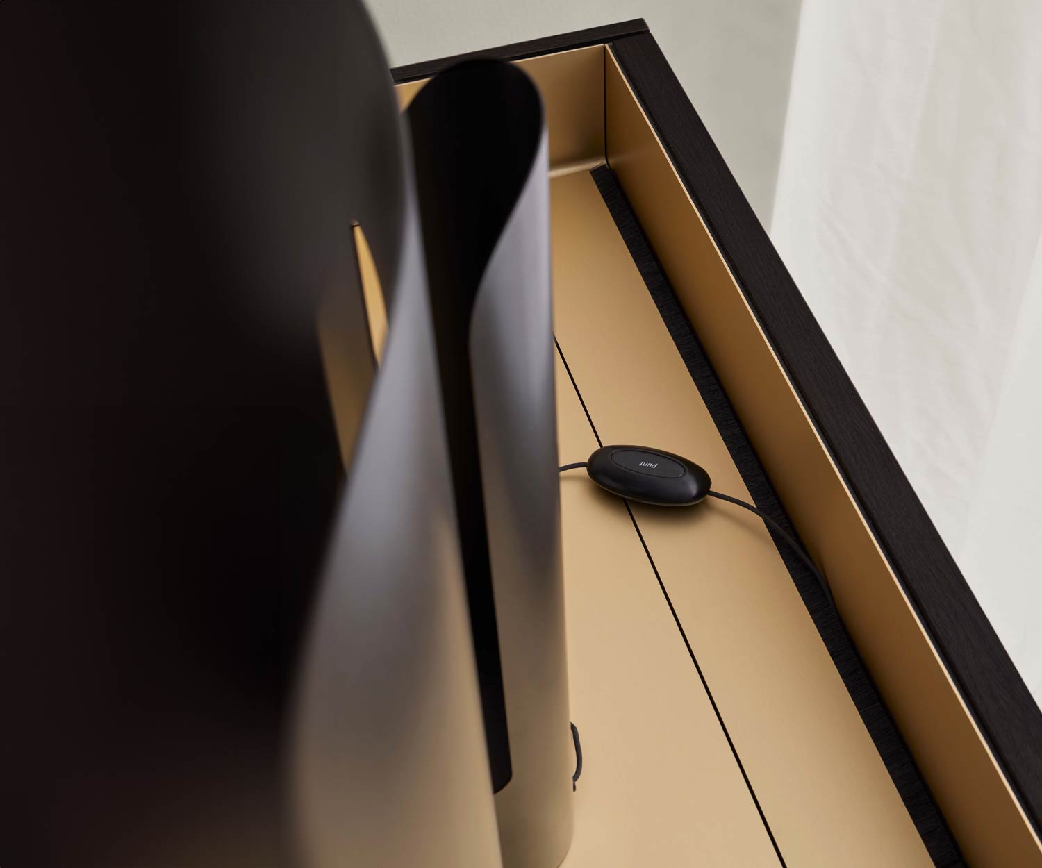 Durch die clevere Klappe verschwinden die Kabel unserer Geräte schnell aus dem Sichtfeld, was den Raum aufgeräumter wirken lässt.