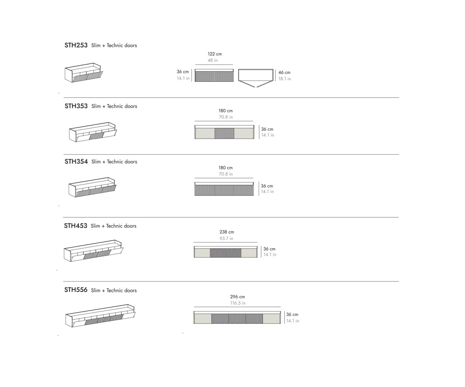 Das Punt Stockholm Slim TV Sideboard ist in 4 Breiten erhältlich: