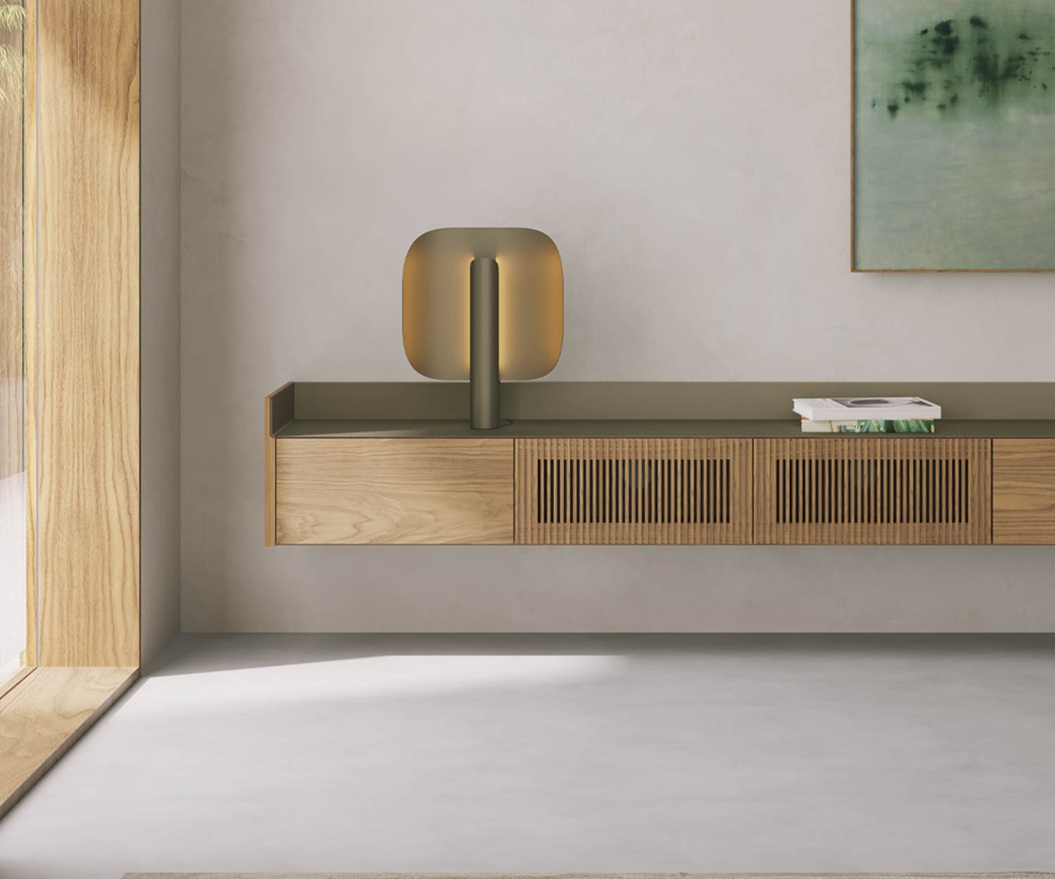 Die Farben der anodisierten Abdeckplatte sind in Gold oder Bronze erhältlich. Der Korpus, die Lamellen und die Front dagegen sind auswählbar in Super Matt Eiche, Super Matt Walnuss oder Dunkel gebeizte Eiche (Stained Oak Ebony) erhältlich.
